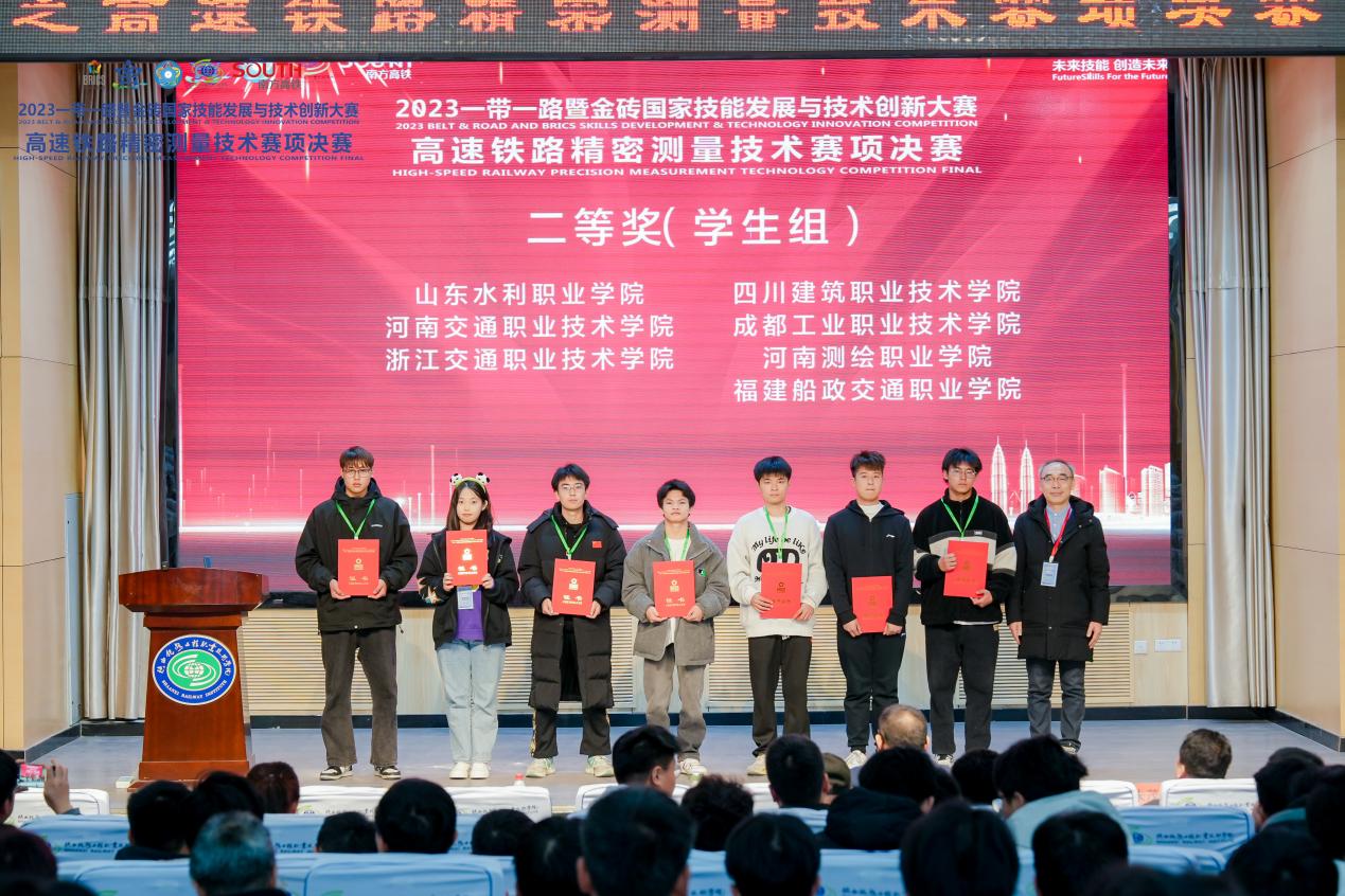 11月17日—20日,2023一帶一路暨金磚國家技能發(fā)展與技術創(chuàng)新大賽“高速鐵路精密測量技術”賽項全國總決賽在陜西鐵路職業(yè)技術學院舉辦。來自國內外的39支參賽隊、156名參賽選手參加比賽。經過激烈角逐,福建船政交通職業(yè)學院軌道交通學院簡瑞杰、陳俊榮、馬濤、向鵬鵬四位同學榮獲團體賽二等獎;指導老師李閩、林淦獲得“優(yōu)秀指導教師”榮譽稱號,福建船政交通職業(yè)學院獲“優(yōu)秀組織獎”。