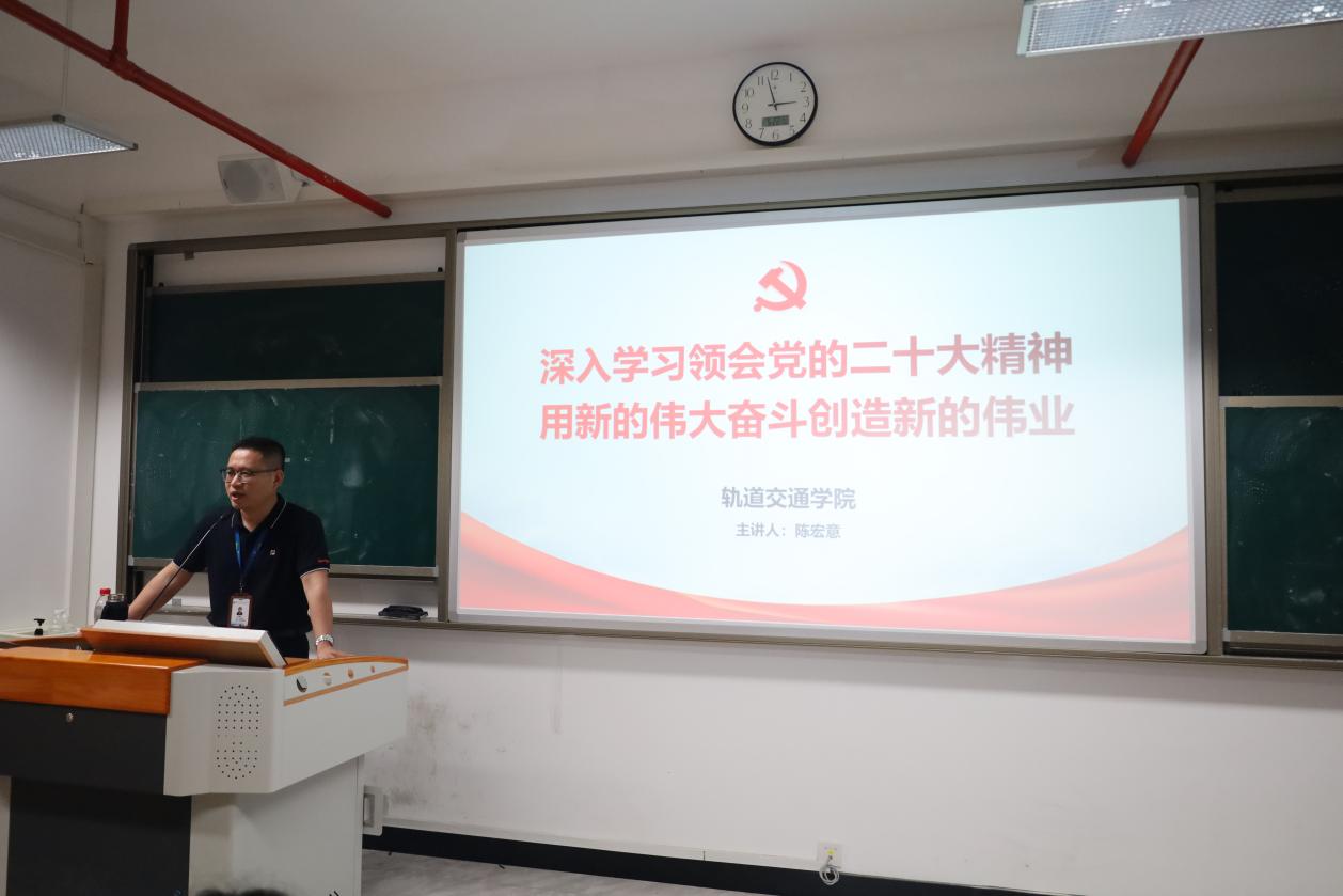 為深入學(xué)習(xí)貫徹習(xí)近平新時(shí)代中國(guó)特色社會(huì)主義思想,落實(shí)黨的二十大精神,明確黨和國(guó)家的奮斗方向,領(lǐng)悟關(guān)于黨和國(guó)家事業(yè)發(fā)展的大政方針和戰(zhàn)略部署的歷史邏輯、理論邏輯、實(shí)踐邏輯,2023年5月22日,軌道交通學(xué)院副院長(zhǎng)陳宏意開(kāi)展了以“深入學(xué)習(xí)領(lǐng)會(huì)黨的二十大精神,用新的偉大奮斗精神創(chuàng)造新的偉業(yè)”為主題的教育宣講會(huì)。