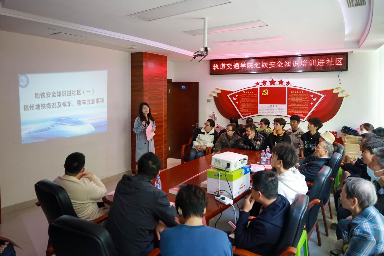 隨著社會不斷發(fā)展、完善,我們出行的方式也越來越多樣化,乘坐地鐵就是其中較方便、快捷且污染較少的一種。那么,福州地鐵的發(fā)展又是怎樣的呢?城市軌道交通專業(yè)又是怎樣的呢?為了進一步宣傳城市軌道交通專業(yè)群,普及安全乘車知識,貫徹綠色出行的理念,2023年11月軌道交通學(xué)院黨總支書記孫基、軌道交通學(xué)院分團委書記林欣欣、輔導(dǎo)員張毅、輔導(dǎo)員鄭華輝、輔導(dǎo)員李雯婷以及學(xué)生干部前往倉山區(qū)上渡街道濱州社區(qū)開展了地鐵安全知識進社區(qū)活動。