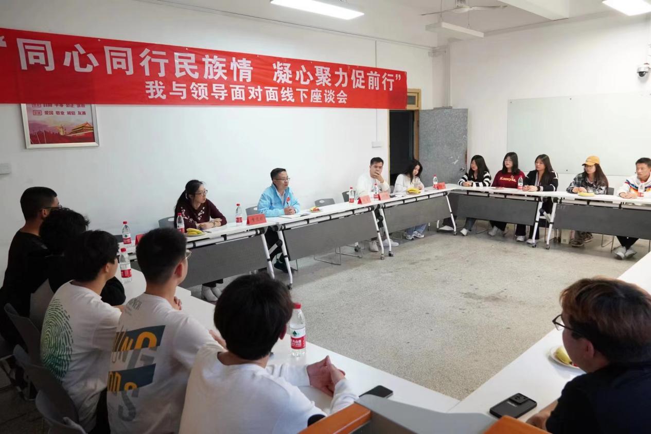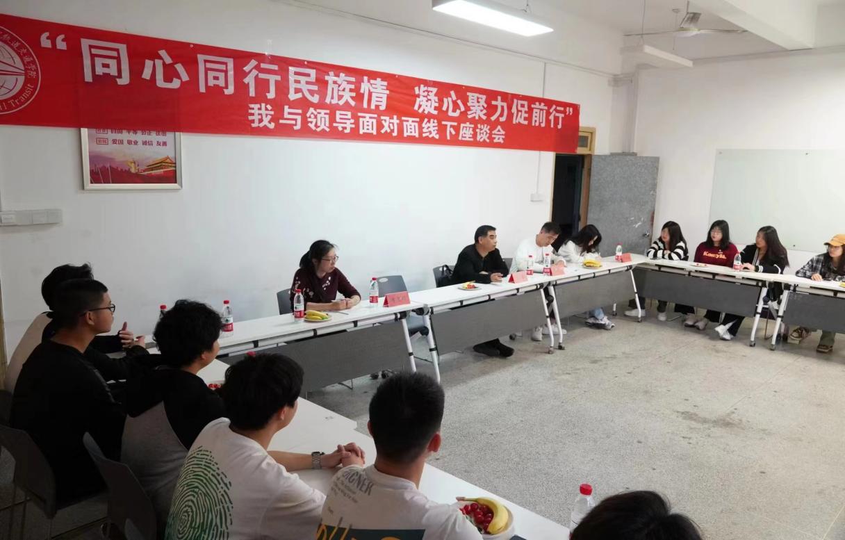 習(xí)近平總書(shū)記指出:“鑄牢中華民族共同體意識(shí)是新時(shí)代黨的民族工作的主線,也是民族地區(qū)各項(xiàng)工作的主線。要把鑄牢中華民族共同體意識(shí)工作抓實(shí)?!毙抡鞒躺希仨毶钊雽W(xué)習(xí)貫徹習(xí)近平總書(shū)記關(guān)于加強(qiáng)和改進(jìn)民族工作的重要思想,將鑄牢中華民族共同體意識(shí)作為一項(xiàng)系統(tǒng)工程抓實(shí)抓細(xì)。2023年11月22日,軌道交通學(xué)院開(kāi)展“同心同行民族情,凝心聚力促前行”我和領(lǐng)導(dǎo)面對(duì)面線下座談會(huì)。參加本次座談會(huì)的有軌道交通學(xué)院黨總支書(shū)記孫基,院長(zhǎng)陳天炎,輔導(dǎo)員李雯婷、鄭華輝、陳凌靜以及各少數(shù)民族的同學(xué)們。
