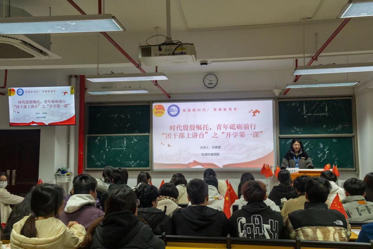為學(xué)習(xí)貫徹習(xí)近平新時(shí)代中國特色社會(huì)主義思想,重視青年、培養(yǎng)青年、愛護(hù)青年、矚望青年,始終貫穿習(xí)近平總書記的“青年觀”,軌道交通學(xué)院于2023年12月開展“團(tuán)干部上講臺(tái)”之“開學(xué)第一課”活動(dòng),本次活動(dòng)以“時(shí)代殷殷囑托,青年砥礪前行”為題,由軌道交通學(xué)院分團(tuán)委書記林欣欣、分團(tuán)委副書記鄭華輝、分團(tuán)委組織委員張毅、分團(tuán)委宣傳委員任香螢分別為我院全體新生上團(tuán)課。