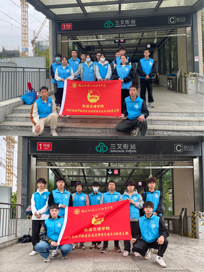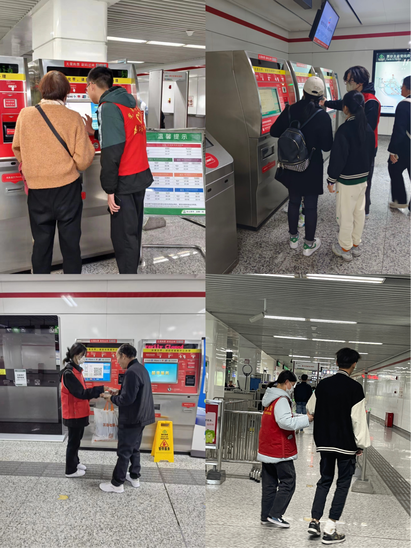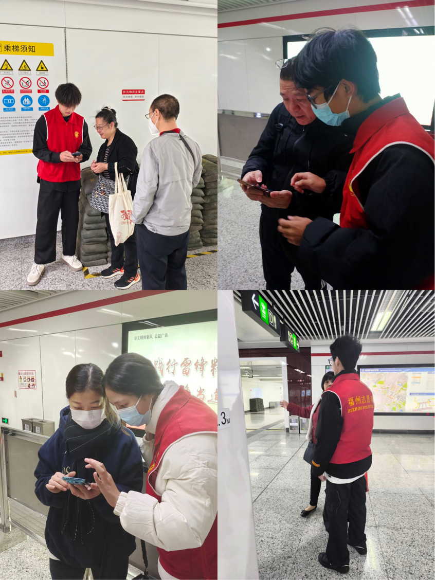 我院志愿者在福州各個(gè)地鐵站進(jìn)行旅客疏導(dǎo)服務(wù)活動(dòng)。主要幫助地鐵站疏導(dǎo)行進(jìn)的旅客、維持站內(nèi)秩序,幫助不熟悉候車室位置的旅客找到正確的地點(diǎn)。