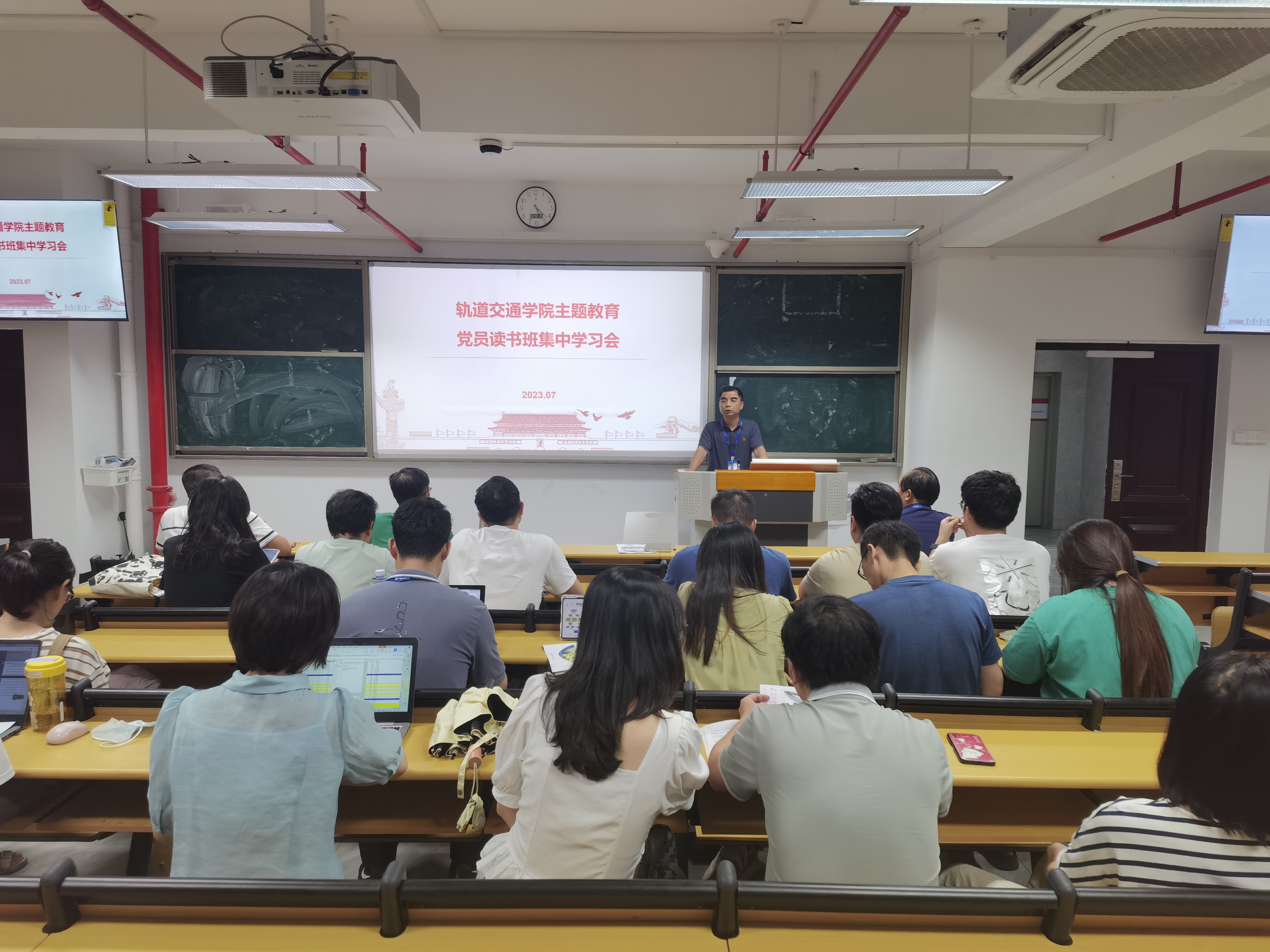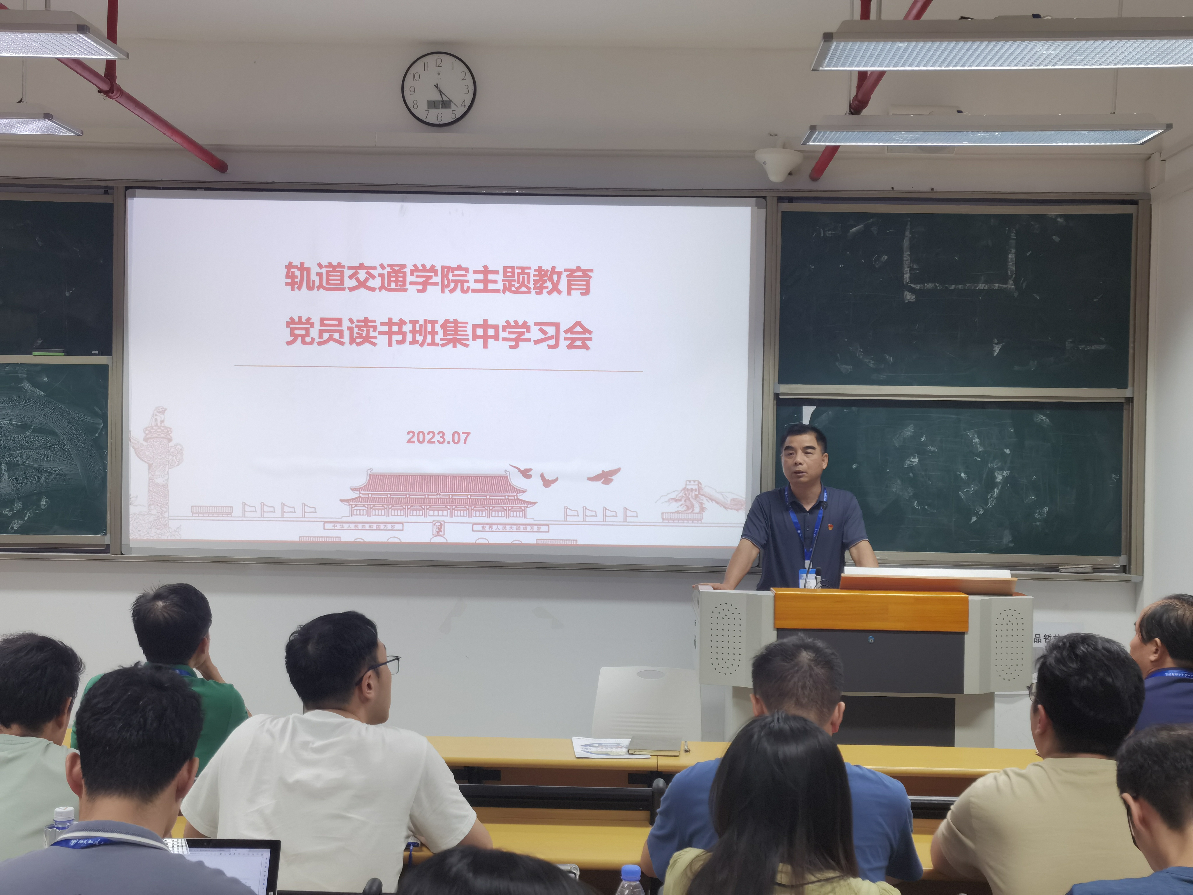 2023年7月3日,軌道交通學(xué)院黨總支組織全體教職工集中學(xué)習(xí)《習(xí)近平新時代中國特色社會主義思想的世界觀和方法論專題摘編》,本次會議由軌道交通學(xué)院黨總支書記孫基主持。
