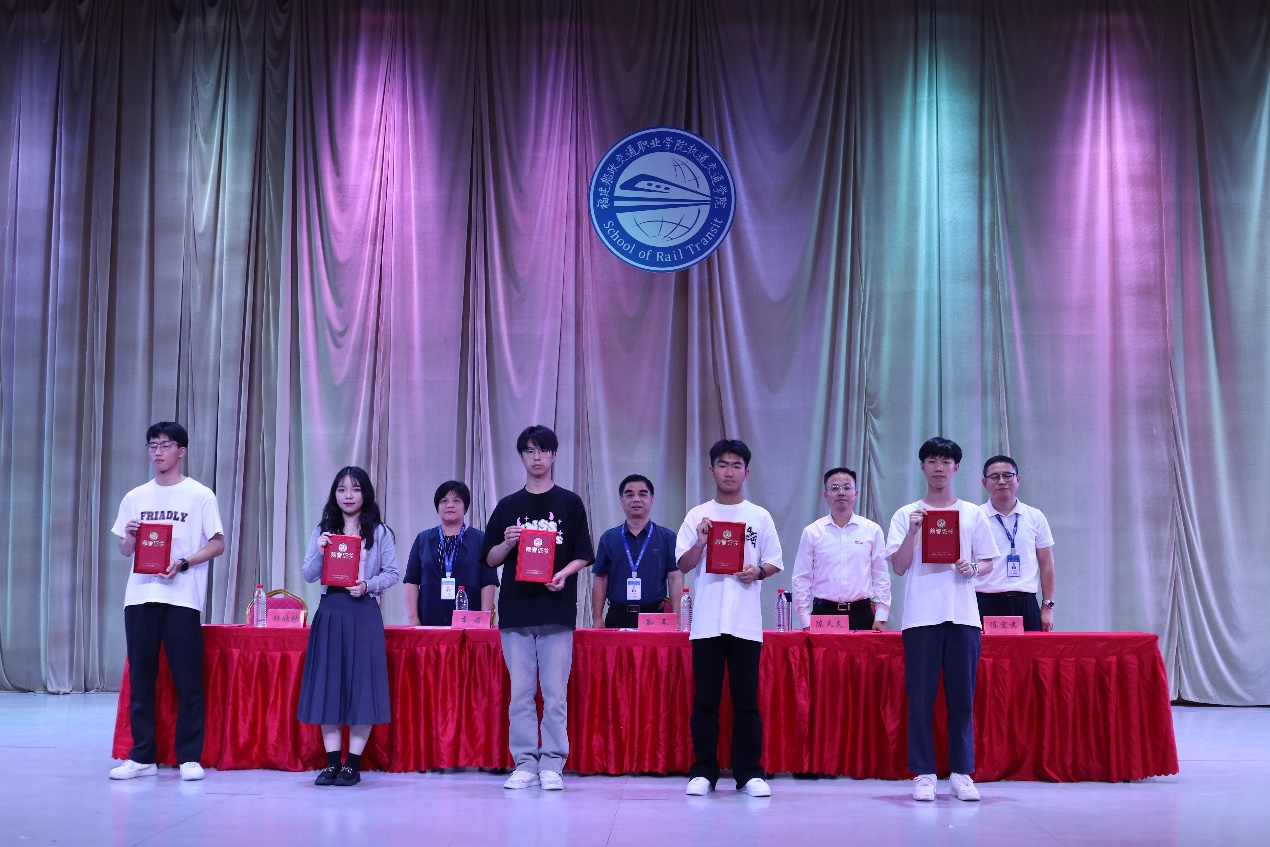 由軌道交通學院副院長季芳宣讀國家獎學金、優(yōu)秀畢業(yè)生、優(yōu)秀學生干部的表彰決定,頒發(fā)榮譽證書。這些榮譽的獲得,是同學們努力的見證,也是對他們未來道路的鼓勵和激勵。