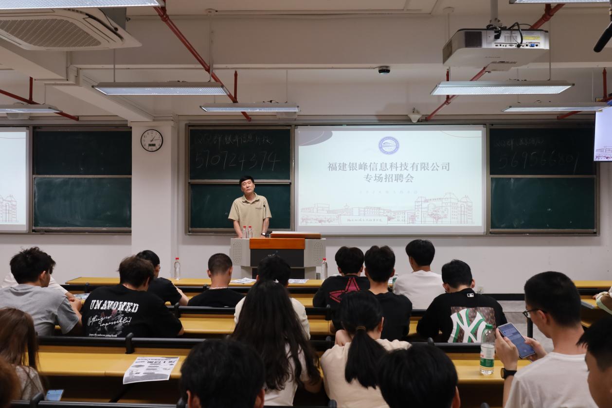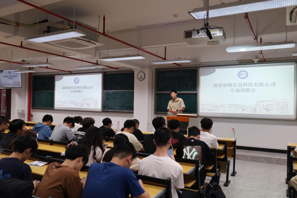 宣講會(huì)上,我院對福建銀峰信息科技有限公司的代表來訪表示誠摯歡迎,福建銀峰信息科技有限公司從創(chuàng)新發(fā)展的實(shí)際情況出發(fā),介紹了其的長板所在、經(jīng)營定位、運(yùn)營構(gòu)架、未來前景以及對高技術(shù)人才的渴求等情況,以及有關(guān)的薪資待遇和員工福利。