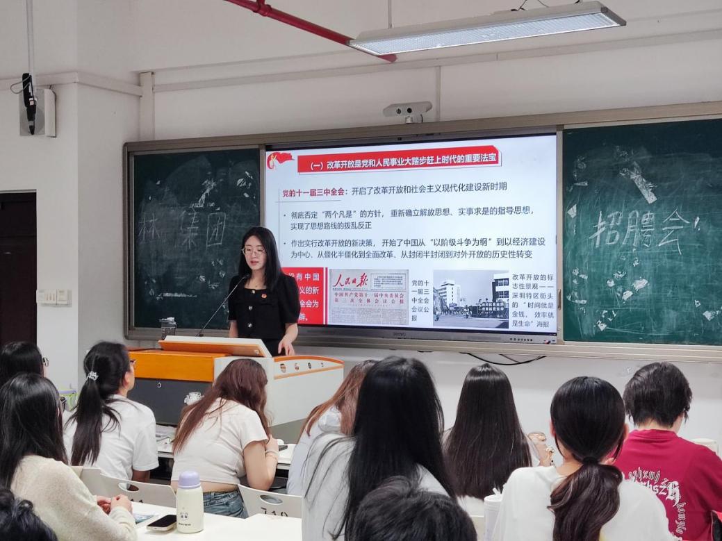 為深入學(xué)習(xí)貫徹黨的二十屆三中全會精神,進一步加深學(xué)院全體教職工對《中共中央關(guān)于進一步全面深化改革、推進中國式現(xiàn)代化的決定》的學(xué)習(xí)理解,9月6日-9月10日,軌道交通學(xué)院四位教師團干對學(xué)院學(xué)生干部、各班級展開專題宣講,帶領(lǐng)青年學(xué)生深學(xué)細悟黨的二十屆三中全會精神。