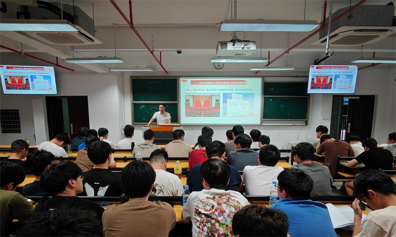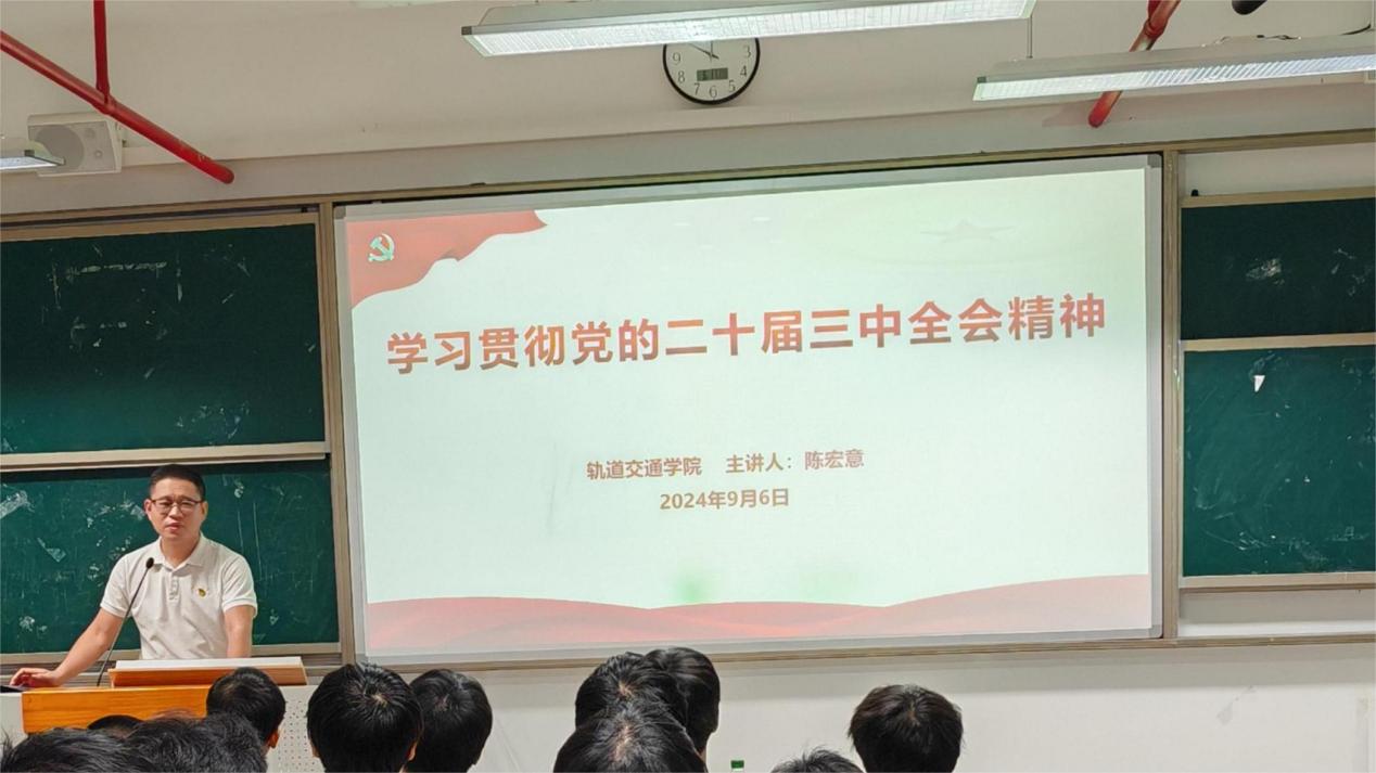 為全面深入學(xué)習(xí)領(lǐng)會黨的二十屆三中全會精神,引導(dǎo)師生把思想和行動統(tǒng)一到全會精神上來。9月6日,軌道交通學(xué)院第五黨支部開展學(xué)習(xí)貫徹黨的二十屆三中全會精神宣講會。軌道交通學(xué)院黨總支宣傳委員、副院長、第五黨支部書記陳宏意作《學(xué)習(xí)貫徹黨的二十屆三中全會精神》專題宣講,支部教師、學(xué)生黨員和入黨積極分子等110余人參加了宣講會。