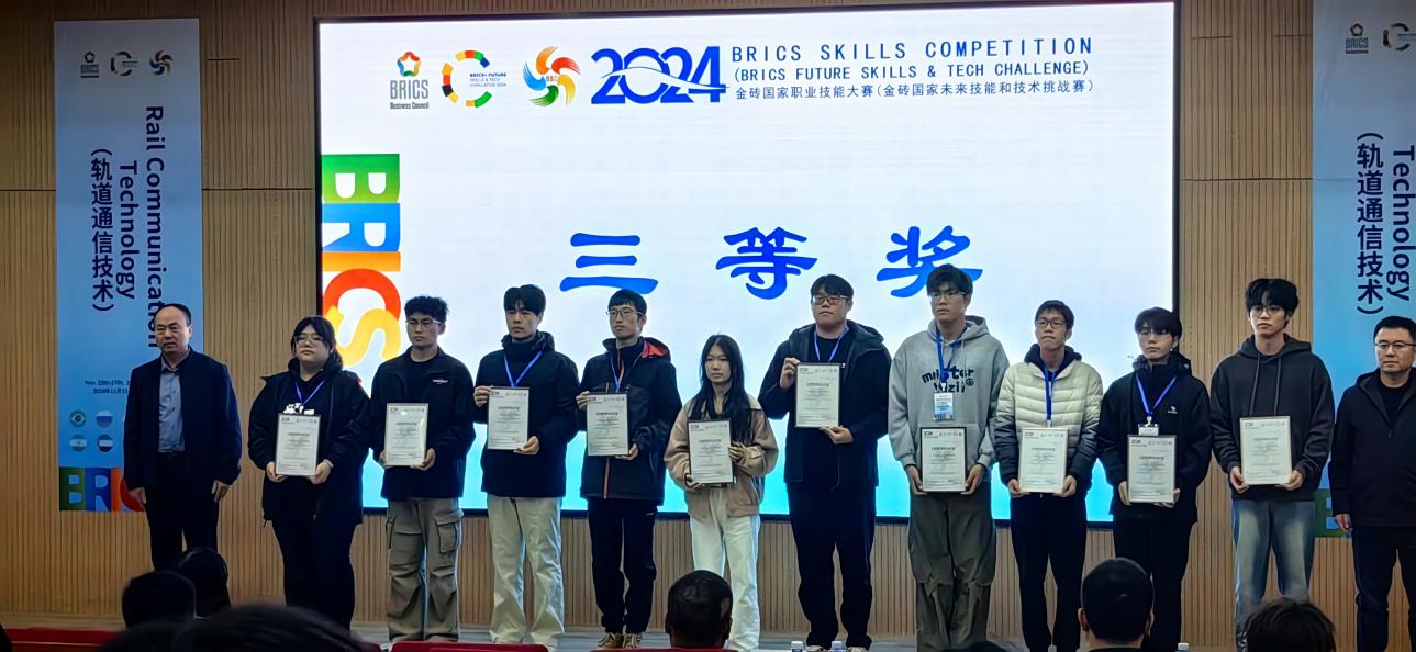 2024年11月15日-17日, 2024金磚國家職業(yè)技能大賽軌道通信技術(shù)賽項國際總決賽在煙臺工程職業(yè)技術(shù)學(xué)院展開激烈角逐。我院沈俊慧老師精心指導(dǎo)的學(xué)生唐家煇代表福建船政交通職業(yè)學(xué)院參賽并獲得國際總決賽三等獎。