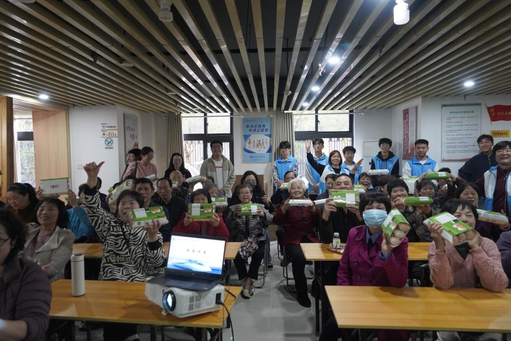 老師們的生動講解吸引著來到現(xiàn)場的社區(qū)居民們,大家紛紛積極參與互動,課堂氛圍和諧歡樂,居民們紛紛表示受益匪淺?;顒咏咏猜?,志愿者們還為社區(qū)居民準(zhǔn)備了精美禮品發(fā)放。