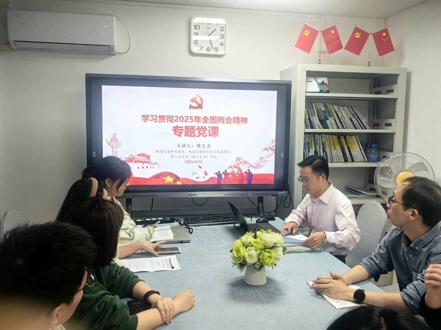 為深入學(xué)習(xí)貫徹 2025 年全國兩會精神,引領(lǐng)黨員把握時(shí)代脈搏,明確使命擔(dān)當(dāng),4月16日下午軌道交通學(xué)院第三黨支部在校友樓黨建室開展了一堂別開生面的書記上黨課。此次黨課由支部書記陳天炎同志主講,全體黨員齊聚一堂,共同汲取奮進(jìn)力量。