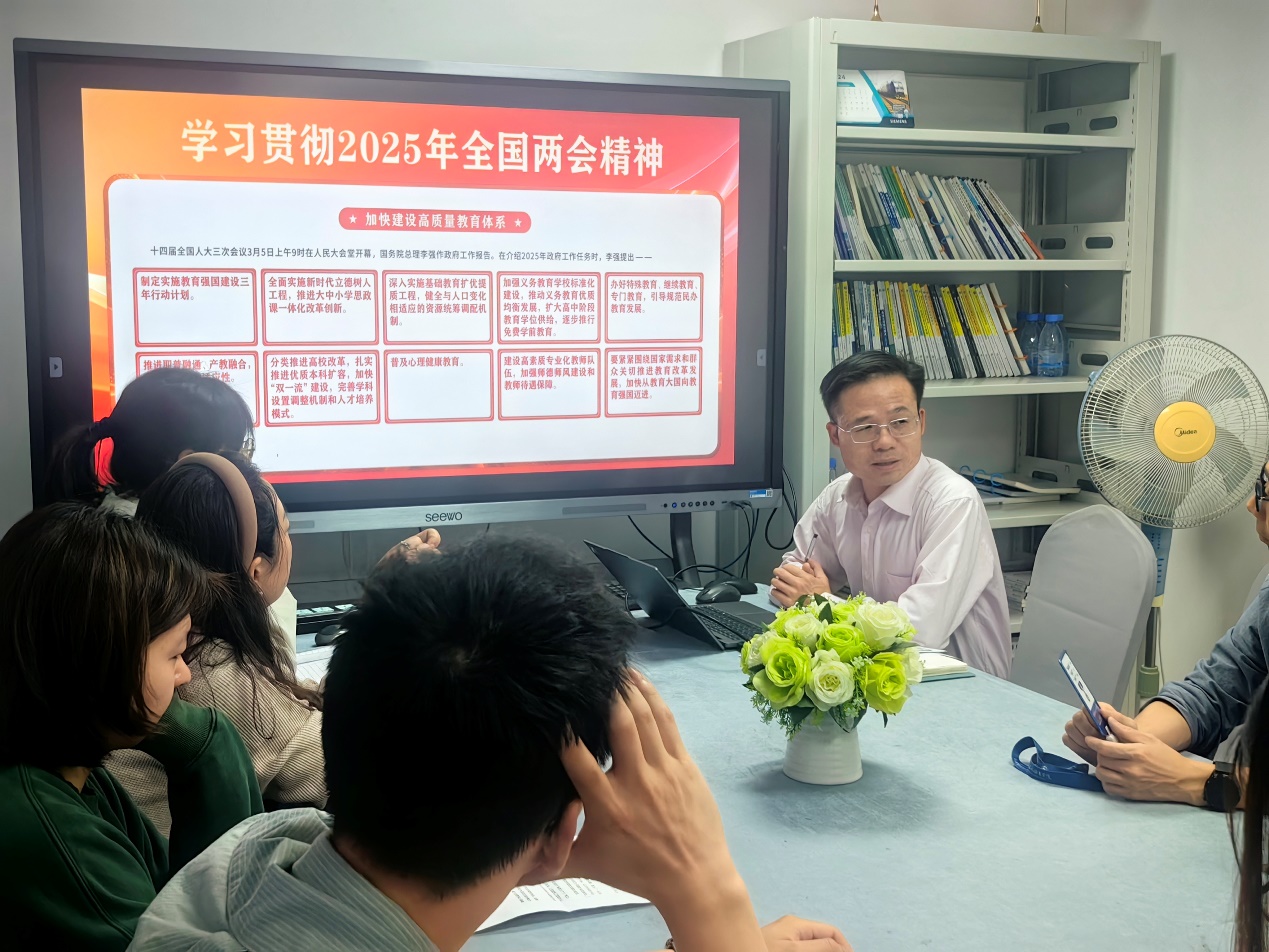 在講解過程中,陳天炎書記圍繞習(xí)近平總書記在全國兩會期間的重要講話精神展開。談到政府工作報(bào)告中的教育相關(guān)內(nèi)容,陳天炎書記尤為關(guān)注產(chǎn)教融合與人才培養(yǎng)。他分享道,報(bào)告中強(qiáng)調(diào)深化產(chǎn)教融合,這與學(xué)院一直以來的發(fā)展思路不謀而合。學(xué)院應(yīng)以此為契機(jī),加強(qiáng)與企業(yè)的合作,打造更多高質(zhì)量的實(shí)習(xí)實(shí)訓(xùn)基地,讓學(xué)生在實(shí)踐中提升專業(yè)技能,更好地適應(yīng)社會需求。陳書記還列舉了一些成功的產(chǎn)教融合案例,啟發(fā)黨員教師思考如何將理論教學(xué)與實(shí)踐更好地結(jié)合。
