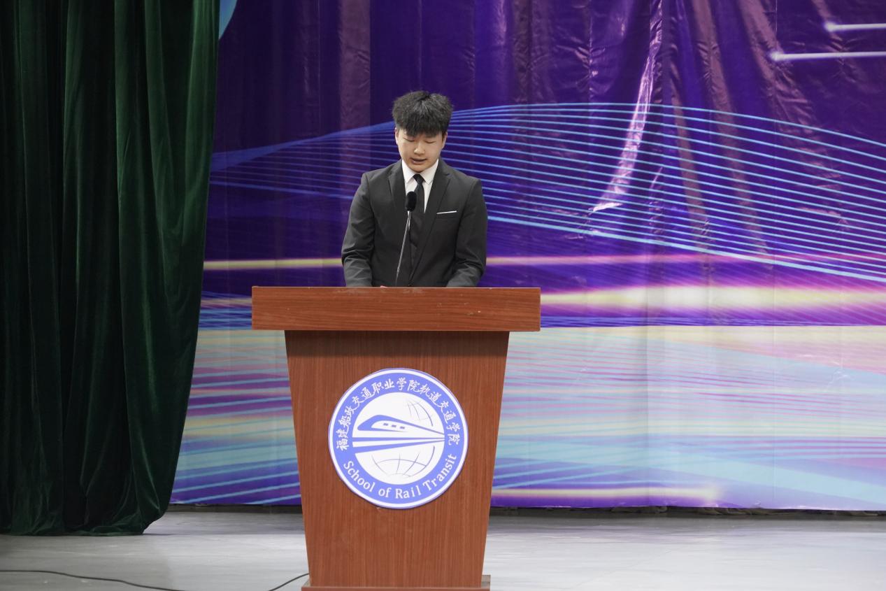 陳天炎院長登臺致開幕辭。他的目光溫柔而堅定,深情回顧了同學(xué)們在校園里的成長歷程。從初入校園時的青澀懵懂,到即將畢業(yè)時的自信從容,這一路的蛻變,都被其看在眼里。他肯定了同學(xué)們在學(xué)術(shù)研究、實踐操作等方面取得的優(yōu)異成績,也對大家在面對困難時展現(xiàn)出的堅韌不拔給予高度贊揚(yáng)。院長寄語畢業(yè)生們,要始終保持對知識的渴望,對專業(yè)的熱愛,在未來的軌道交通領(lǐng)域以及更廣闊的天地中,不斷探索創(chuàng)新,為行業(yè)發(fā)展貢獻(xiàn)自己的力量,做有擔(dān)當(dāng)、有作為的時代新人。以院訓(xùn)勉勵自身,將船政精神發(fā)揚(yáng)光大。