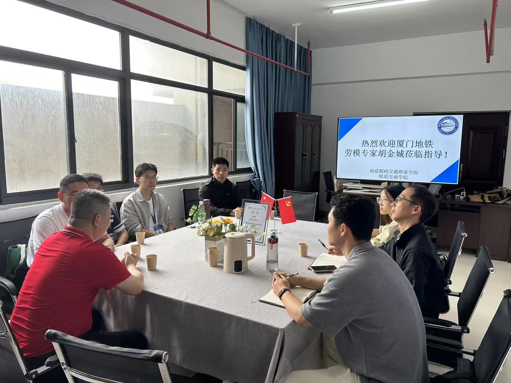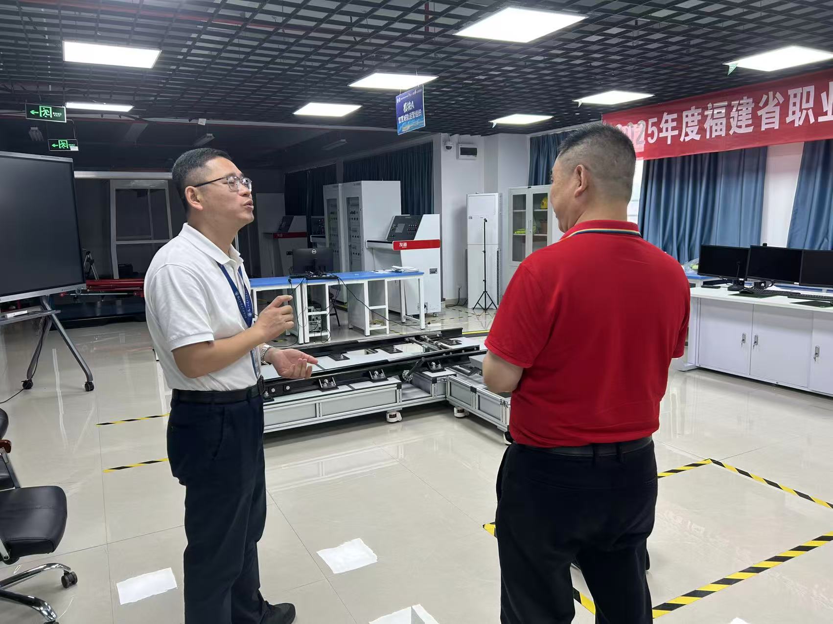 近日,全國技術(shù)能手、廈門市“胡金城技能大師工作室”領(lǐng)辦人、“行業(yè)工匠”、“五一勞動獎?wù)隆鲍@得者、廈門地鐵運營有限公司風水電高級技師胡金城一行蒞院參觀交流。學(xué)院領(lǐng)導(dǎo)班子、李智宇技能大師工作室負責人和骨干教師參加了考察交流。