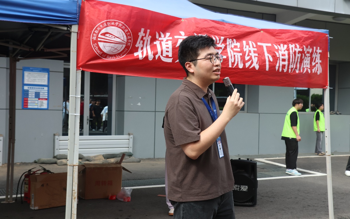 在安全集結(jié)區(qū),軌道交通學(xué)院繆宇彬老師為同學(xué)們進(jìn)行了一場(chǎng)干貨滿滿的消防安全知識(shí)培訓(xùn)。講解內(nèi)容緊扣“知險(xiǎn)、避險(xiǎn)、除險(xiǎn)”三大核心,層層遞進(jìn):