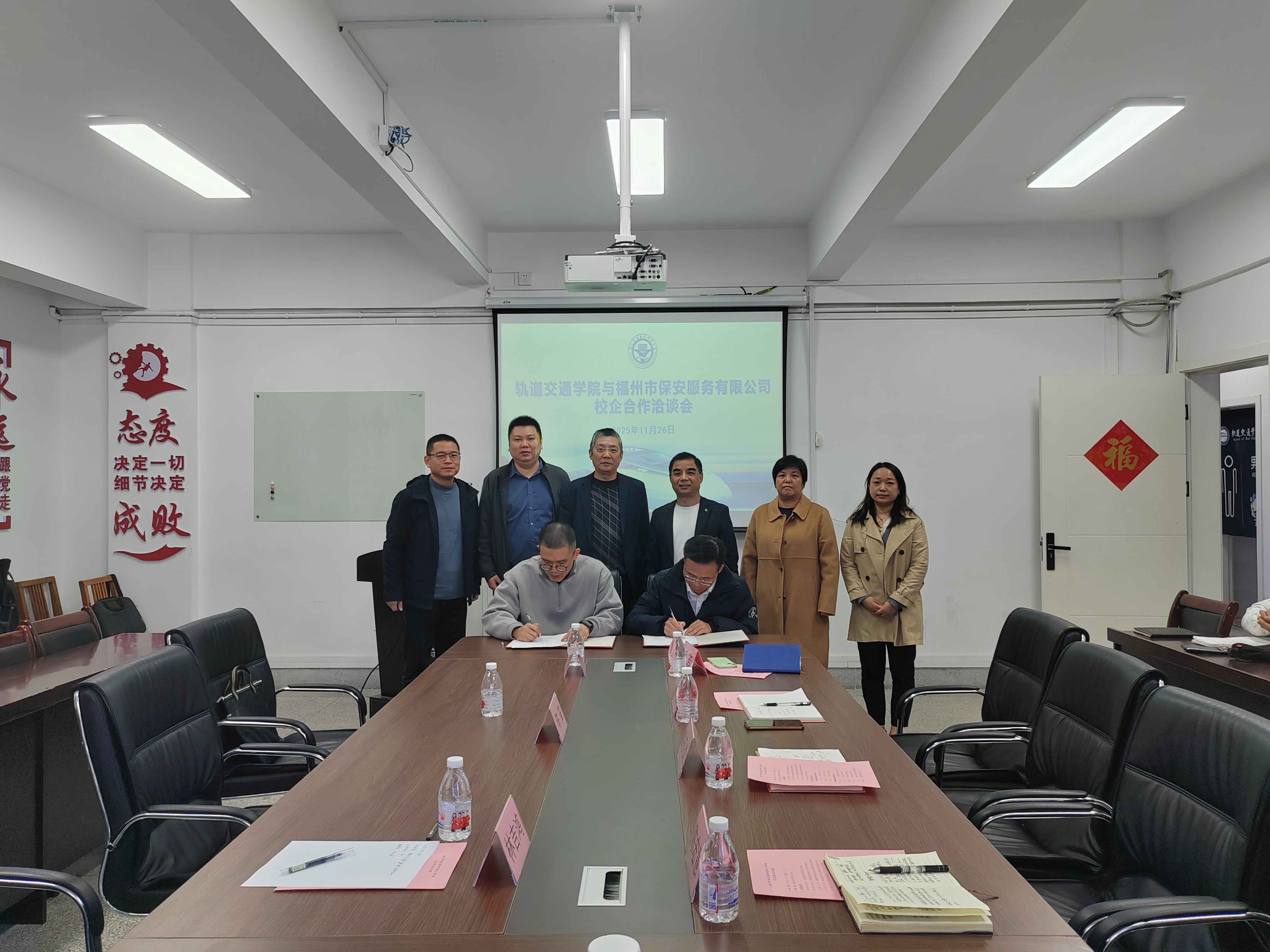 簽約儀式現(xiàn)場(chǎng),福州市保安服務(wù)有限公司負(fù)責(zé)人陳笛、綜合辦公室主任羅宏青、培訓(xùn)分公司副經(jīng)理林吉鴻等企業(yè)代表,與軌道交通學(xué)院院長(zhǎng)陳天炎、黨總支書記孫基、副院長(zhǎng)陳宏意、季芳以及運(yùn)營(yíng)教研室教師代表共同出席了本次活動(dòng),見證了這一重要時(shí)刻。