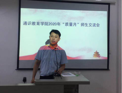 為落實《通識教育學(xué)院關(guān)于印發(fā)2020年“質(zhì)量月”活動方案的通知》(通識院〔2020〕6號)要求,我院于9月23日下午組織開展2020年“質(zhì)量月”師生交流會活動?;顒邮紫葹楂@得“數(shù)學(xué)網(wǎng)課教學(xué)最佳筆記大賽”獲獎學(xué)生頒發(fā)榮譽證書。在場師生圍繞“如何提高教學(xué)質(zhì)量”進行交流,學(xué)生紛紛踴躍發(fā)言,現(xiàn)場氣氛活躍。最后,通識教育學(xué)院金晶晶副院長對活動進行總結(jié),并勉勵到場學(xué)生: