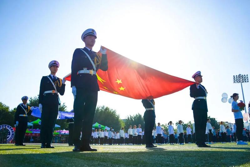 在全校師生們莊嚴(yán)的目光注視下,五星紅旗冉冉升起,在嘹亮的國(guó)歌聲結(jié)束后,盛大的開幕式正式開始。