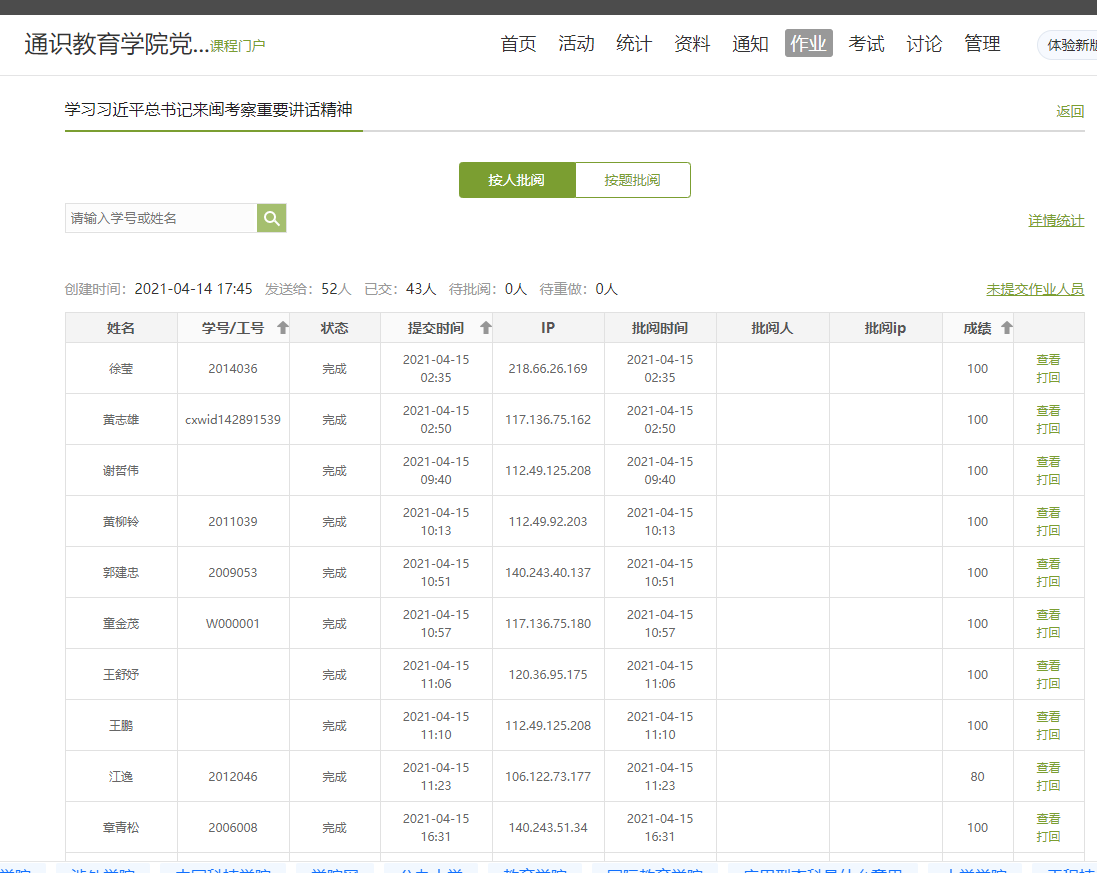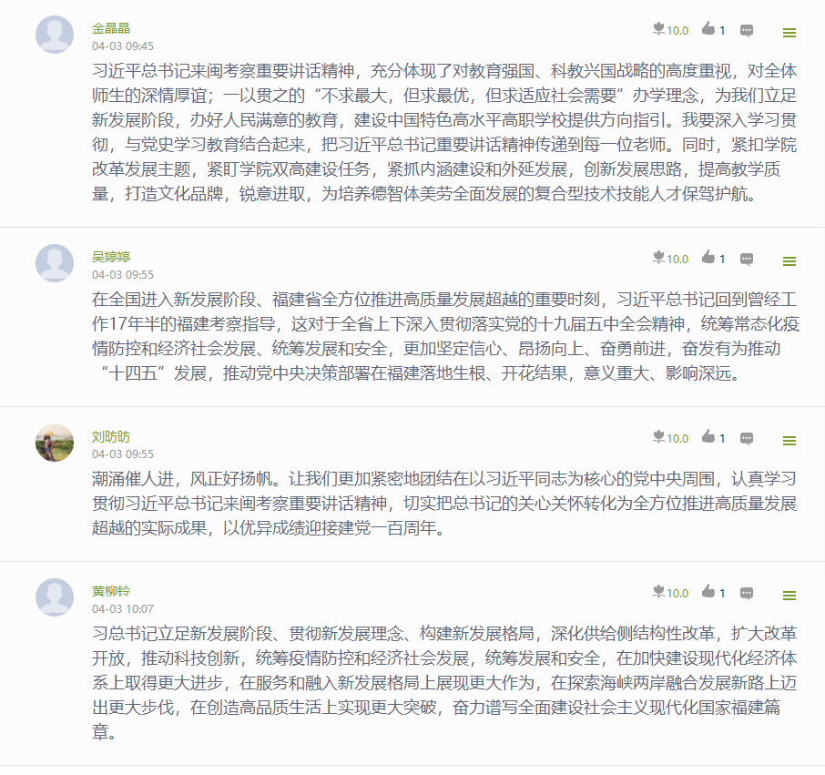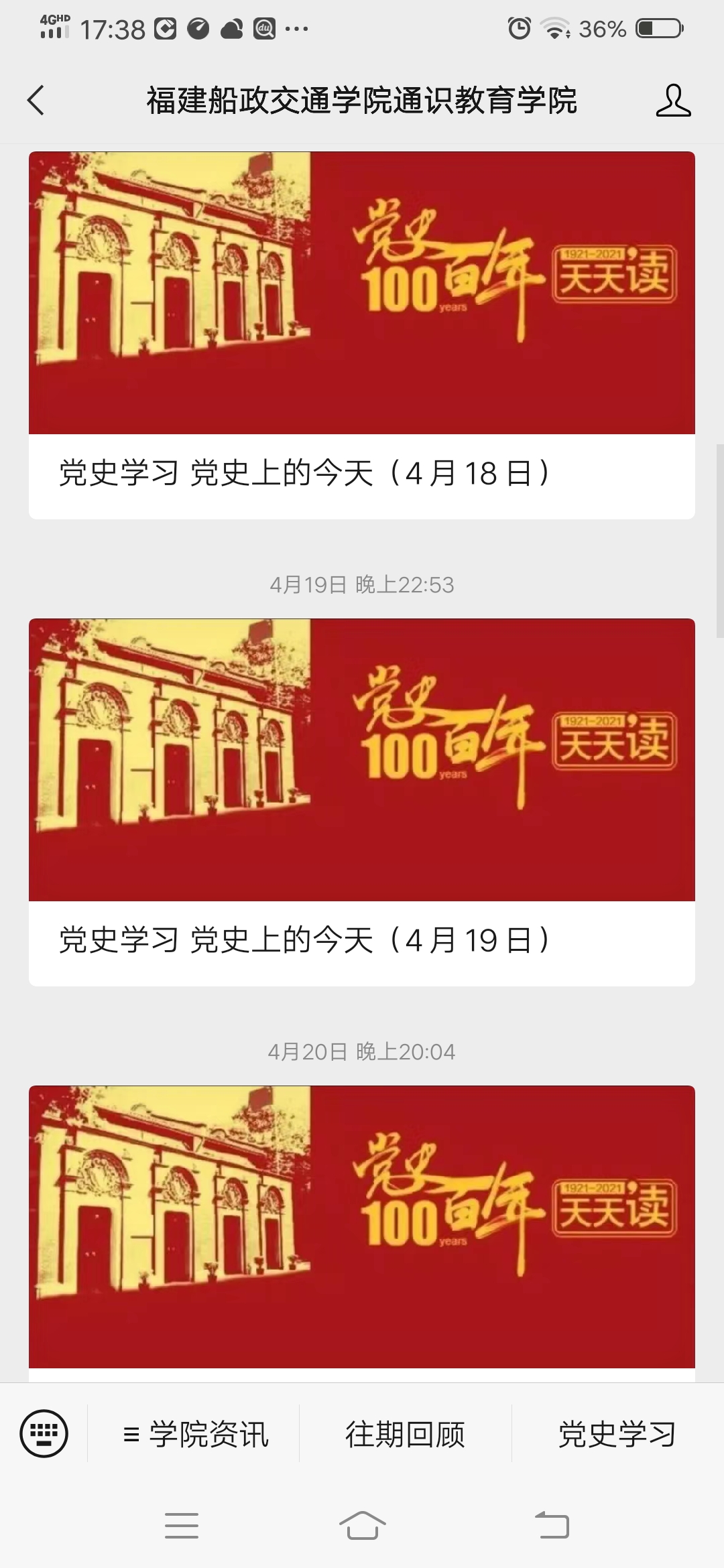通識(shí)教育學(xué)院黨總支創(chuàng)新黨史學(xué)習(xí)教育形式,利用“學(xué)習(xí)通”線上黨建平臺(tái)的討論和作業(yè)等模塊,開展黨史學(xué)習(xí)教育,以及黨史和習(xí)近平總書記來閩考察重要講話精神應(yīng)知應(yīng)會(huì)線上測(cè)試,增強(qiáng)學(xué)習(xí)實(shí)效。同時(shí),每日在網(wǎng)頁和微信公眾號(hào)上推送“黨史上的今天”和黨史學(xué)習(xí)相關(guān)內(nèi)容,通報(bào)總支黨員前日總支“學(xué)習(xí)強(qiáng)國”積分情況,督促每位教師認(rèn)真學(xué)習(xí)。