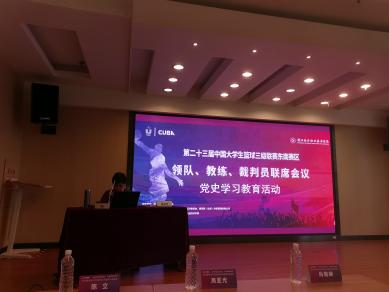比賽期間,組委會(huì)將黨史學(xué)習(xí)教育與賽事相結(jié)合,在領(lǐng)隊(duì)、教練、裁判員聯(lián)席會(huì)上舉辦“黨史學(xué)習(xí)教育”?;顒?dòng)內(nèi)容詳實(shí),梳理了習(xí)近平總書記主政浙江期間制定的“八八戰(zhàn)略”,深入介紹習(xí)近平總書記如何將欠發(fā)達(dá)鄉(xiāng)鎮(zhèn)村列入工作規(guī)劃、納入整體發(fā)展框架,進(jìn)行專門安排和部署。本次黨史學(xué)習(xí)教育讓各領(lǐng)隊(duì)、教練、裁判員在外出比賽之余收獲滿滿,收到高度肯定。會(huì)后,我院第二黨支部郭建忠書記在宿舍內(nèi)分別對(duì)男女籃球隊(duì)隊(duì)員召開座談會(huì),向同學(xué)們介紹習(xí)近平總書記在浙江的工作事跡,解析了在全球疫情肆虐的環(huán)境下,我國(guó)各項(xiàng)體育賽事仍在順利開展的原因,體現(xiàn)了我黨在疫情防控方面做出的卓越貢獻(xiàn)。會(huì)后同學(xué)們紛紛表示,當(dāng)前的比賽機(jī)會(huì)來之不易,彰顯我國(guó)社會(huì)主義制度的優(yōu)越性,我們要珍惜機(jī)會(huì),每個(gè)同學(xué)都要有一顆愛國(guó)愛黨的心。通過此次活動(dòng),極大激發(fā)了同學(xué)們的愛國(guó)主義情懷,達(dá)到“以體育德 以賽育人”的育人目標(biāo)。