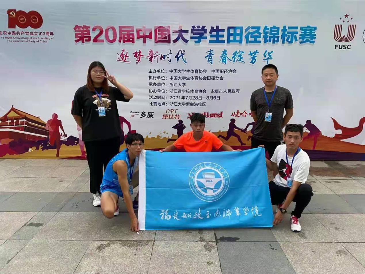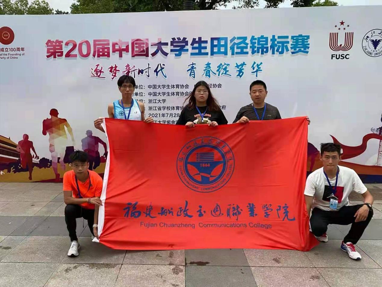 第20屆中國(guó)大學(xué)生田徑錦標(biāo)賽于2021年7月31日在浙江大學(xué)紫金港校區(qū)開(kāi)幕,來(lái)自全國(guó)255所高校的2778名運(yùn)動(dòng)員和教練員參加此次大賽。我校派出4名運(yùn)動(dòng)員參加了乙組(高職高專組)的比賽。領(lǐng)隊(duì)郭建忠,教練員由劉寶亮、章青松擔(dān)任。經(jīng)過(guò)激烈角逐,我校郭文志、莊曉翔、吳哲儀同學(xué)獲優(yōu)異成績(jī)。