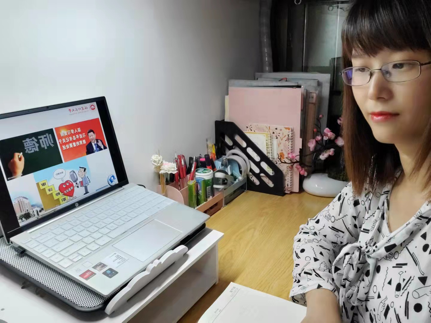 教師觀看張桂梅在“七一勛章”頒授儀式上的發(fā)言