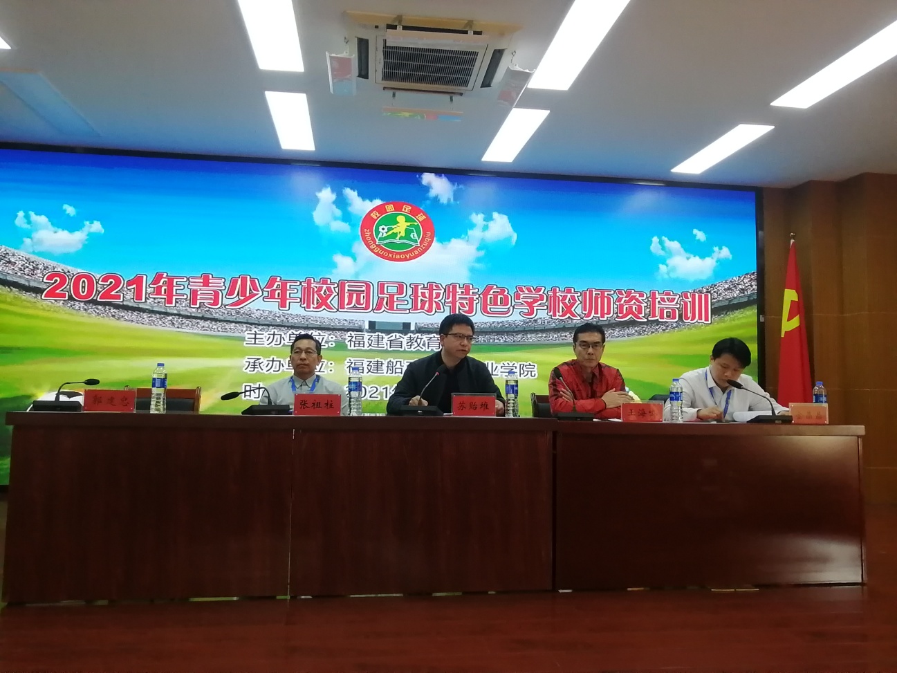 12月3日下午,2021年青少年校園足球特色學(xué)校師資培訓(xùn)開班儀式在我校舉行,出席開班儀式的領(lǐng)導(dǎo)有:福建省教育廳體衛(wèi)藝語(yǔ)處蘇貽堆處長(zhǎng)、原國(guó)家女子足球隊(duì)主教練王海鳴、學(xué)院張祖柱副院長(zhǎng)、通識(shí)教育學(xué)院領(lǐng)導(dǎo)班子。培訓(xùn)班講師團(tuán)、參訓(xùn)學(xué)員及我校體育教育部教師參加開班儀式。