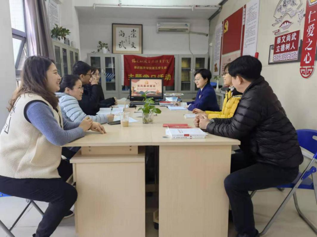 為深入推進廉政文化建設(shè)和廉潔教育工作,增強干部廉潔自律意識,建設(shè)風清氣正的廉潔船政,12月22日,通識教育學(xué)院第五黨支部開展黨風“廉政警示教育”專題學(xué)習活動,召開專題學(xué)習會。通識教育學(xué)院副院長金晶晶親臨現(xiàn)場參加指導(dǎo)。