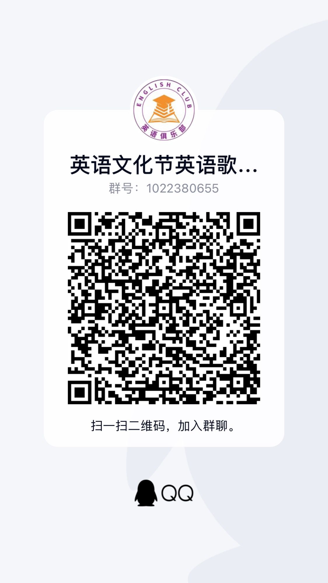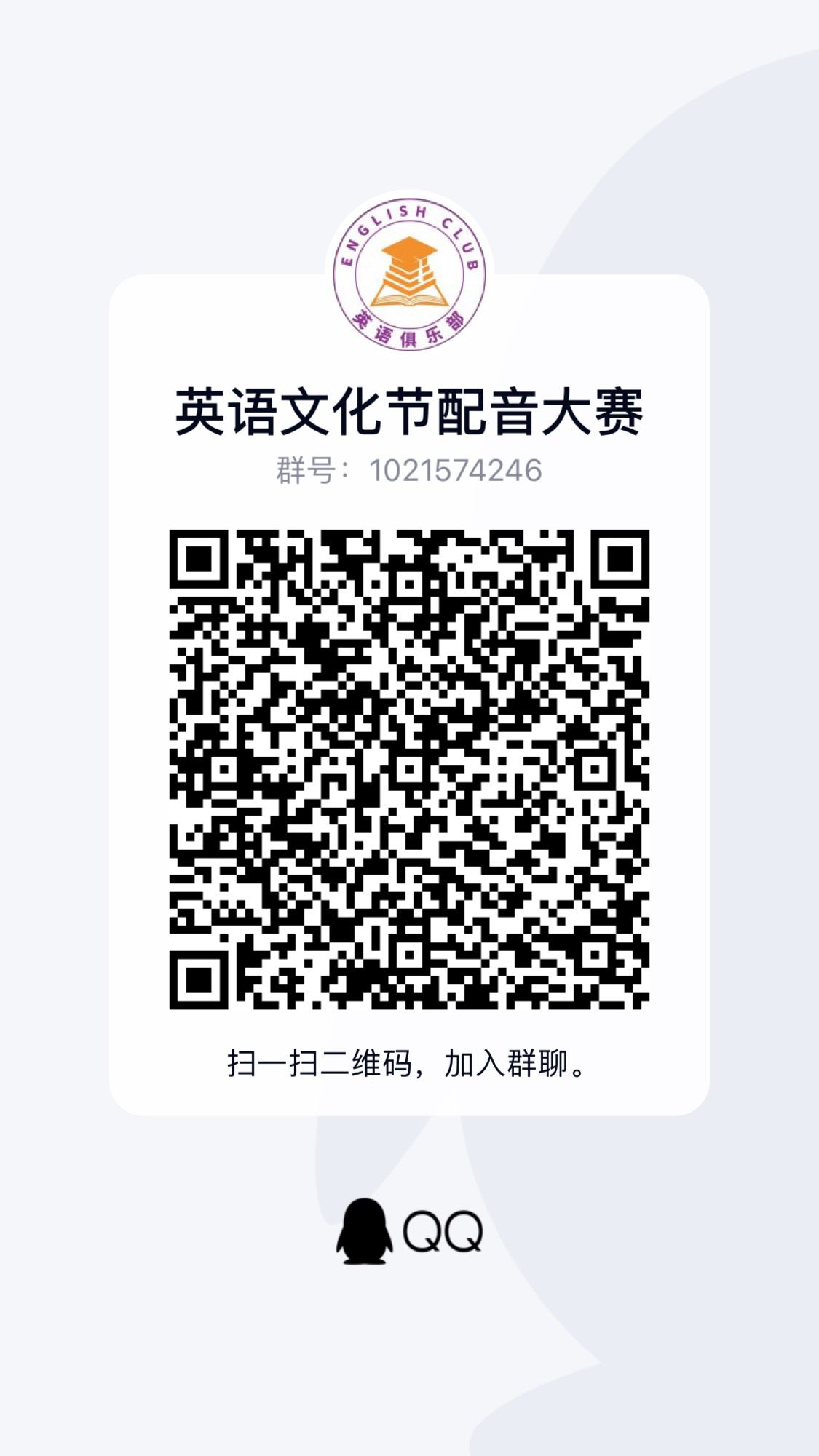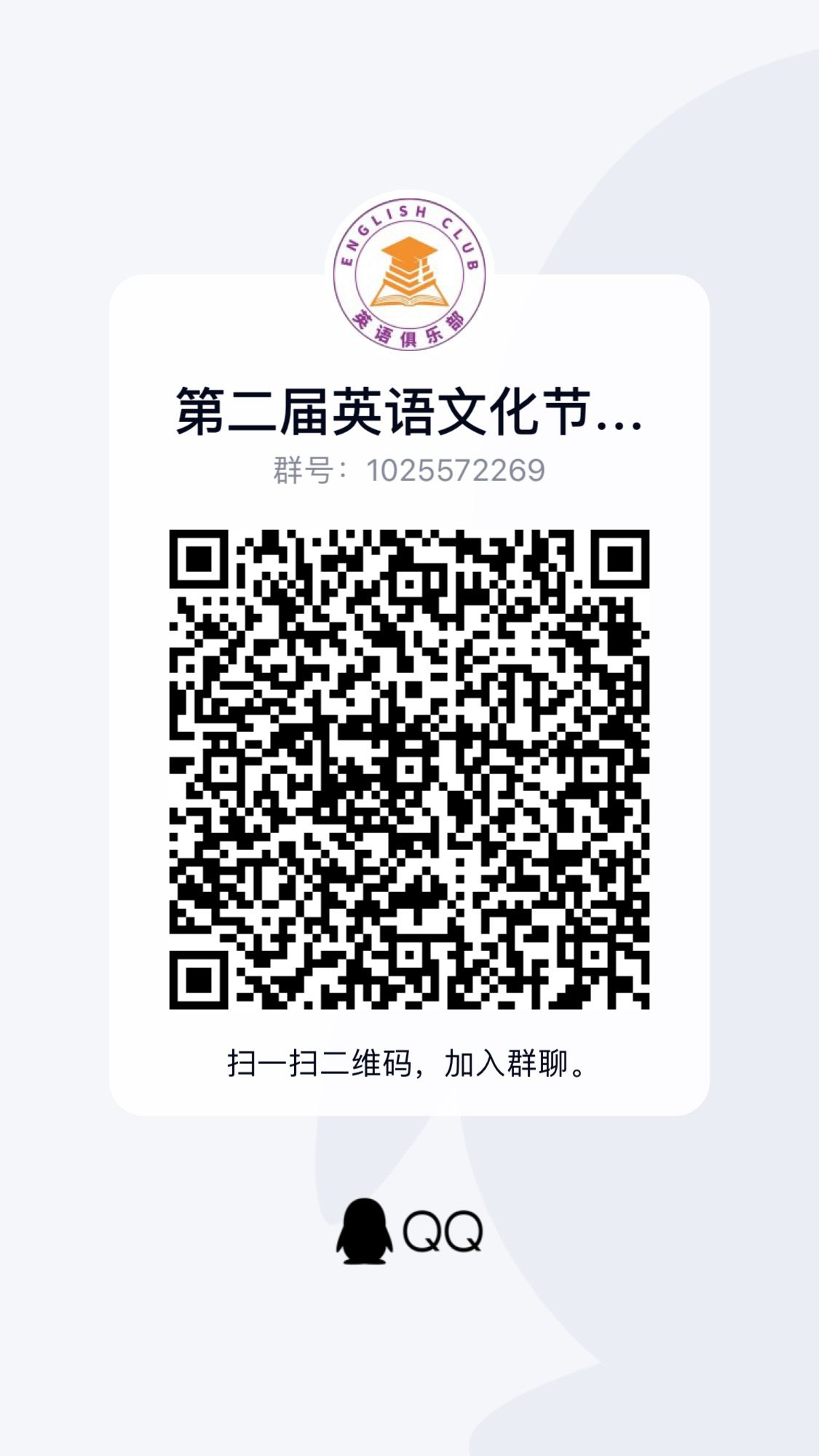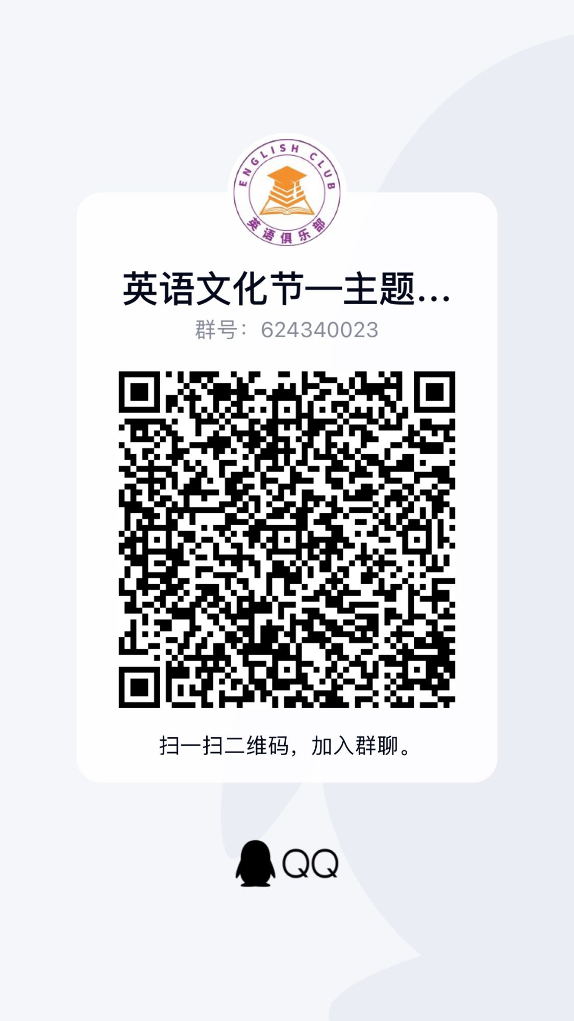 掃碼加入Q群并在三全育人平臺搜索關(guān)鍵詞“英語文化節(jié)”找到相應(yīng)活動進行報名