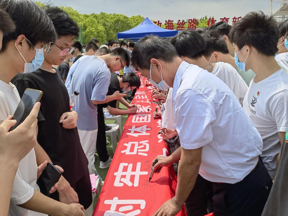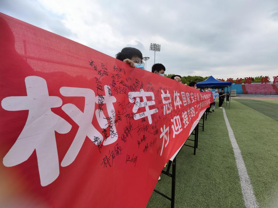 活動中,學生代表張政同學,帶領(lǐng)大家進行“爭做新時代國家安全的鋼鐵衛(wèi)士宣誓”?;顒幼詈螅M行國家安全教育日簽名儀式,師生們有序走向簽字席簽下自己作為踐行者的姓名。