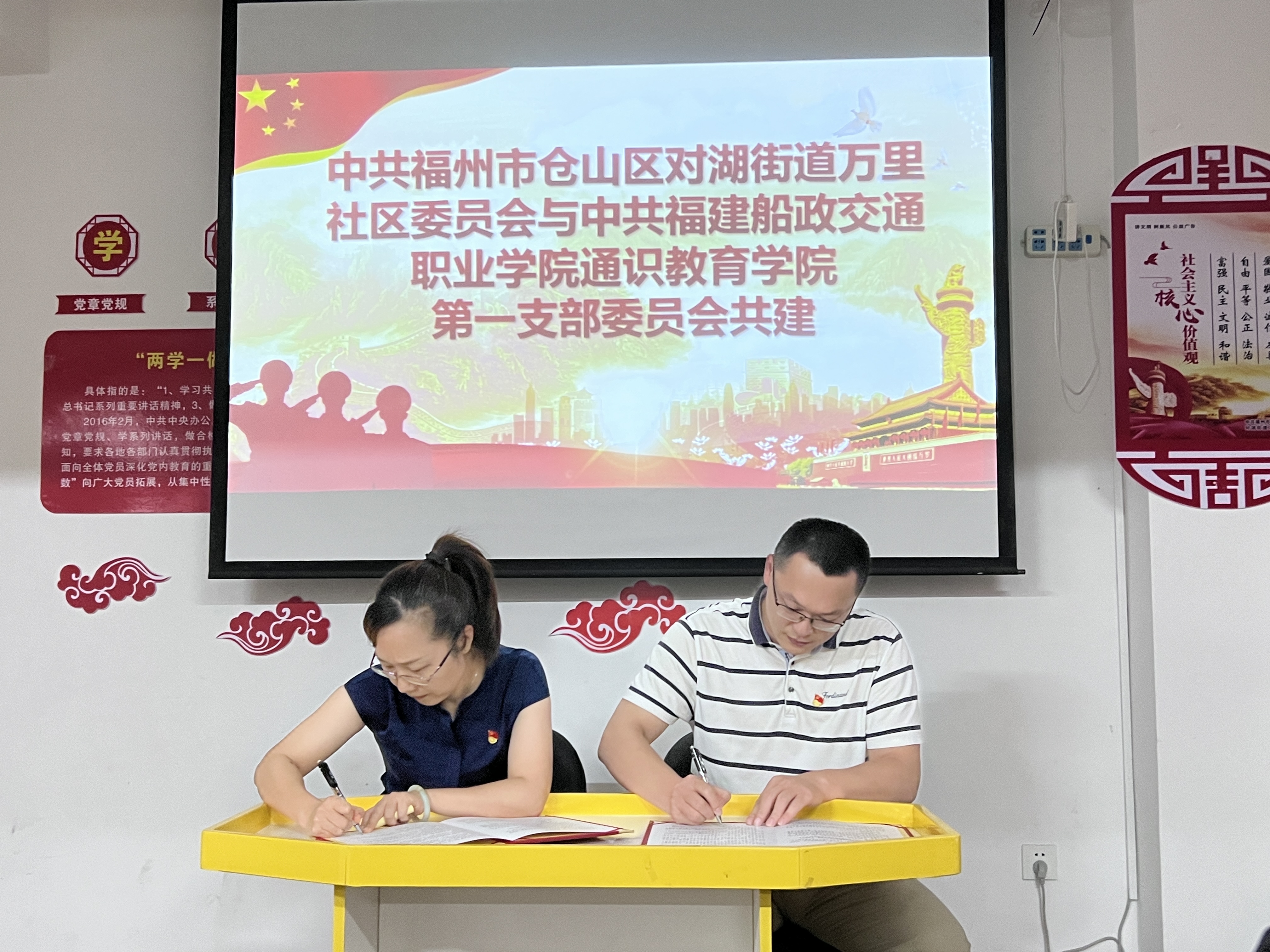 接著,雙方黨員重溫入黨誓詞,過“政治生日”,并開展《閩山閩水物華新--習近平福建足跡》等系列教材交流。雙方交流會上,倉山區(qū)萬里社區(qū)主任林玉梅回顧黨的百年光輝歷程,要求社區(qū)黨員要深入學習習近平新時代中國特色社會主義思想,以更加奮發(fā)有為的精神狀態(tài)和求真務實的工作作風做好社區(qū)工作。通識教育學院黨總支副書記金晶晶要求總支黨員們要結合省委部署的“提高效率、提升效能、提增效益”行動,示范帶動,以“馬上就辦、真抓實干”的工作作風,抓緊每一天、干好每一月,奮力推動各項工作提速增效。最后,雙方黨員合唱《沒有共產黨就沒有新中國》。會后,通識教育學院第一黨支部書記沈焰焰與倉山萬里社區(qū)黨委簽訂黨建共建協(xié)議,建立黨員共育、活動共聯(lián)、資源共享的黨建共建機制。