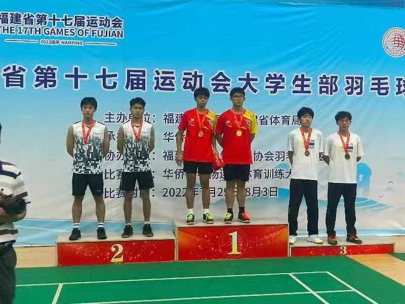 2022年7月27日-8月3日,福建省第十七屆運(yùn)動(dòng)會(huì)(大學(xué)生部)羽毛球比賽在華僑大學(xué)泉州校區(qū)開賽,來自全省43所高校的353名運(yùn)動(dòng)員參賽。本次比賽包括男子單打、男子雙打、女子單打、女子雙打、男子團(tuán)體、女子團(tuán)體6個(gè)項(xiàng)目,我院羽毛球代表隊(duì)榮獲福建省第十七屆運(yùn)動(dòng)會(huì)(大學(xué)生部)羽毛球比賽丙組團(tuán)體總積分第一名的優(yōu)異成績,并獲得“體育道德風(fēng)尚獎(jiǎng)運(yùn)動(dòng)隊(duì)”榮譽(yù)稱號(hào),運(yùn)動(dòng)員蔣賢智、楊舒淇獲個(gè)人“體育道德風(fēng)尚獎(jiǎng)”,王姍姍老師獲“優(yōu)秀教練員”榮譽(yù)稱號(hào)。