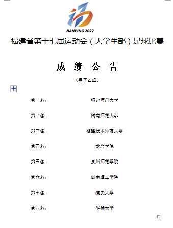 7月14日,福建省第十七屆運(yùn)動(dòng)會(huì)(大學(xué)生部)足球比賽(男子乙組)在我校圓滿落幕。該組別共有來自全省11支高校代表隊(duì)(體育專業(yè))參賽。