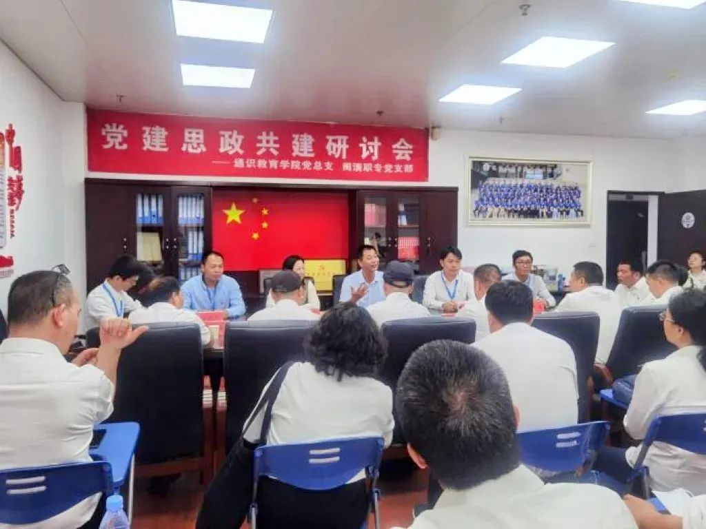 最后,閩清職專全體黨員到通識(shí)教育學(xué)院開展座談交流。在座談會(huì)上,通識(shí)教育學(xué)院院長(zhǎng)、閩清教育局副局長(zhǎng)方儒欽指出,雙方應(yīng)以此次黨建共建活動(dòng)為契機(jī),加強(qiáng)溝通交流,充分發(fā)揮自身優(yōu)勢(shì),共享資源,進(jìn)一步匯聚黨建合力,不斷提升黨建工作和學(xué)校管理水平,努力開創(chuàng)工作新局面。閩清職專陳友水校長(zhǎng)、林萍書記介紹了近年年來(lái)學(xué)校取得的成績(jī)、加強(qiáng)中高職基礎(chǔ)課程一體化建設(shè)等方面的內(nèi)容,表示今后要加強(qiáng)合作交流,共同以黨建引領(lǐng)業(yè)務(wù)、以業(yè)務(wù)豐富黨建,打造學(xué)科特色品牌。
