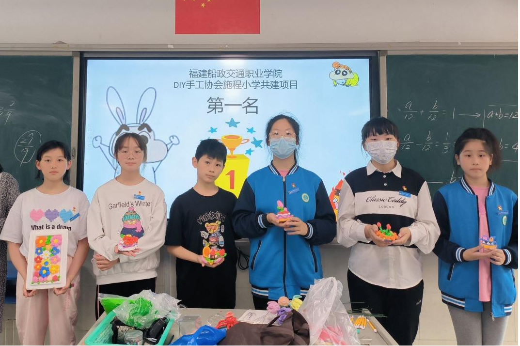 在福建船政交通職業(yè)學(xué)院團(tuán)委牽頭下,DIY手工協(xié)會(huì)還與施程小學(xué)共建項(xiàng)目,以?xún)尚YY源共享、攜手共進(jìn)為基礎(chǔ),由DIY手工協(xié)會(huì)組織手工興趣班教學(xué)活動(dòng),以學(xué)生參與手工制作、競(jìng)賽評(píng)選等形式,為愛(ài)好手工制作的小朋友們提供了一個(gè)展現(xiàn)自我的平臺(tái),強(qiáng)化小朋友們創(chuàng)新意識(shí)和競(jìng)爭(zhēng)意識(shí),鍛煉小朋友們的動(dòng)手能力。