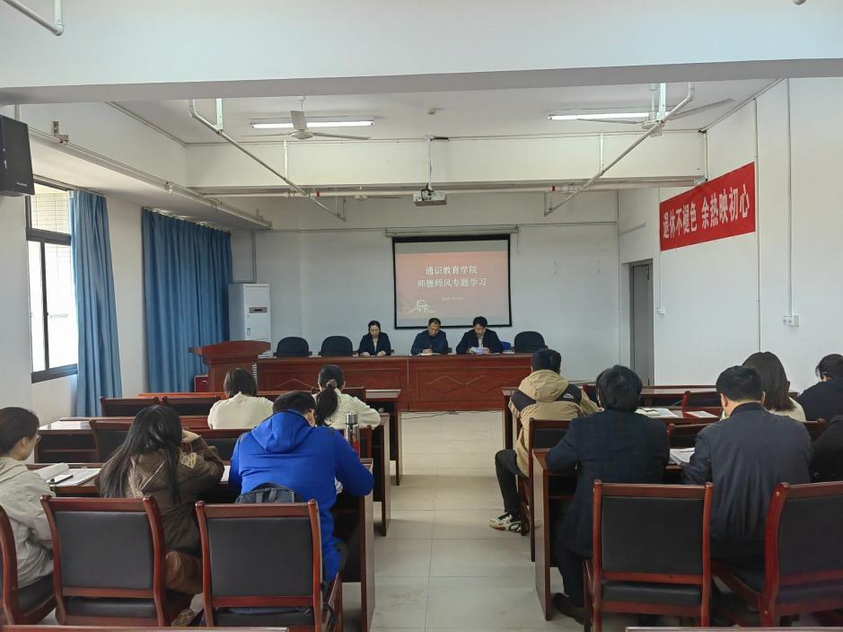 為進(jìn)一步加強(qiáng)教師思想政治教育和師德師風(fēng)建設(shè)工作,落實(shí)立德樹人根本任務(wù),引導(dǎo)教師堅(jiān)守教育初心,踐行育人使命,規(guī)范從教行為,4月24日下午,通識(shí)教育學(xué)院在鑒知樓10樓大會(huì)議室召開師德師風(fēng)專題學(xué)習(xí)會(huì)。金晶晶副院長(zhǎng)領(lǐng)學(xué)教育部《關(guān)于印發(fā)新時(shí)代高校教師職業(yè)行為十項(xiàng)準(zhǔn)則的通知》,展示教學(xué)事故典型案例,要求全體教師自覺遵守師德師風(fēng)規(guī)范,敬業(yè)愛生、為人師表,以新時(shí)代高校教師職業(yè)行為十項(xiàng)準(zhǔn)則和我校教師職業(yè)道德規(guī)范為準(zhǔn)則,規(guī)范自己的行為,涵育高尚師德師風(fēng),恪守職業(yè)“紅線”,嚴(yán)守法紀(jì)“底線”,高尚的職業(yè)道德和優(yōu)良的工作作風(fēng)當(dāng)好學(xué)生的“引路人”。