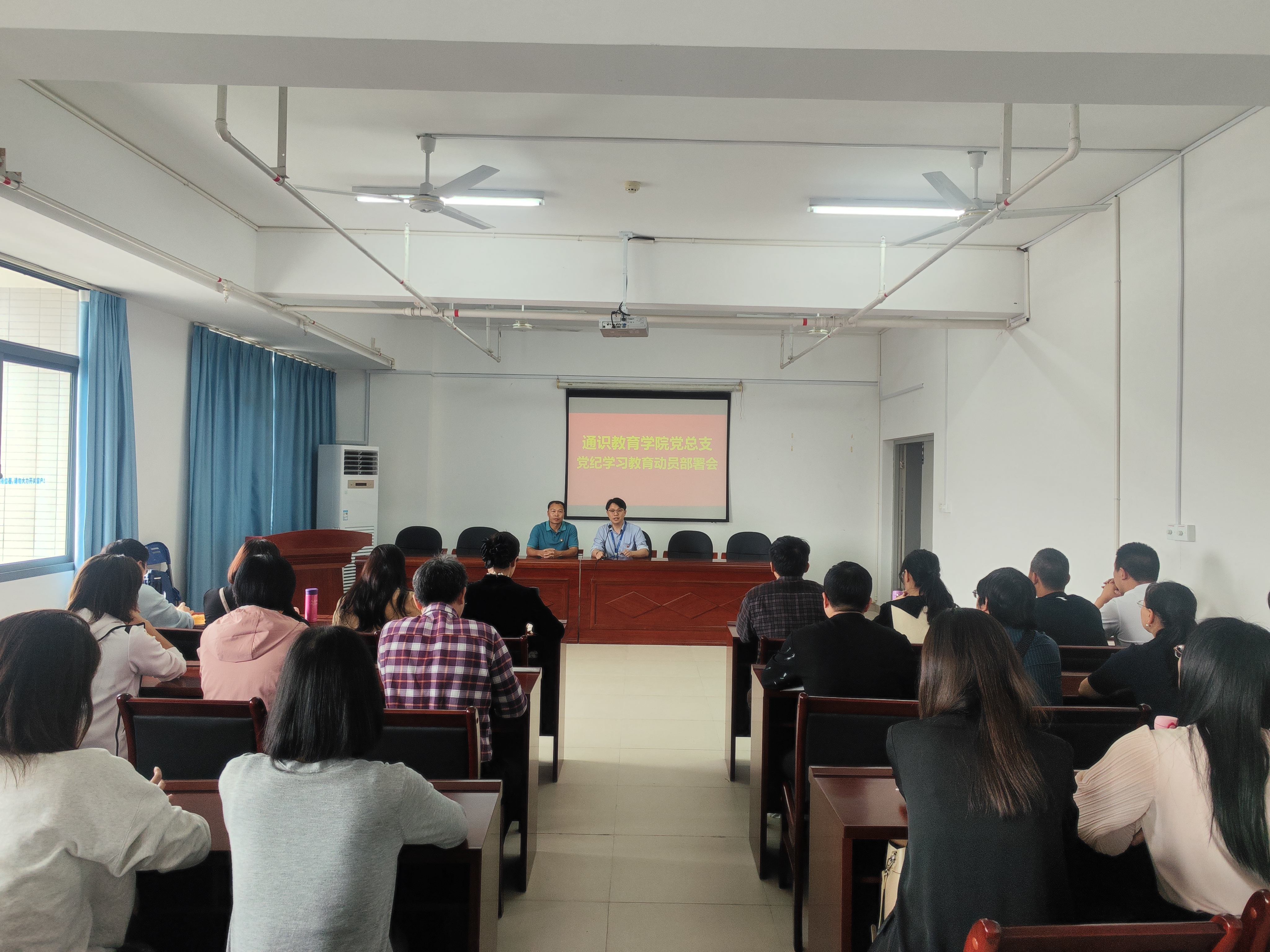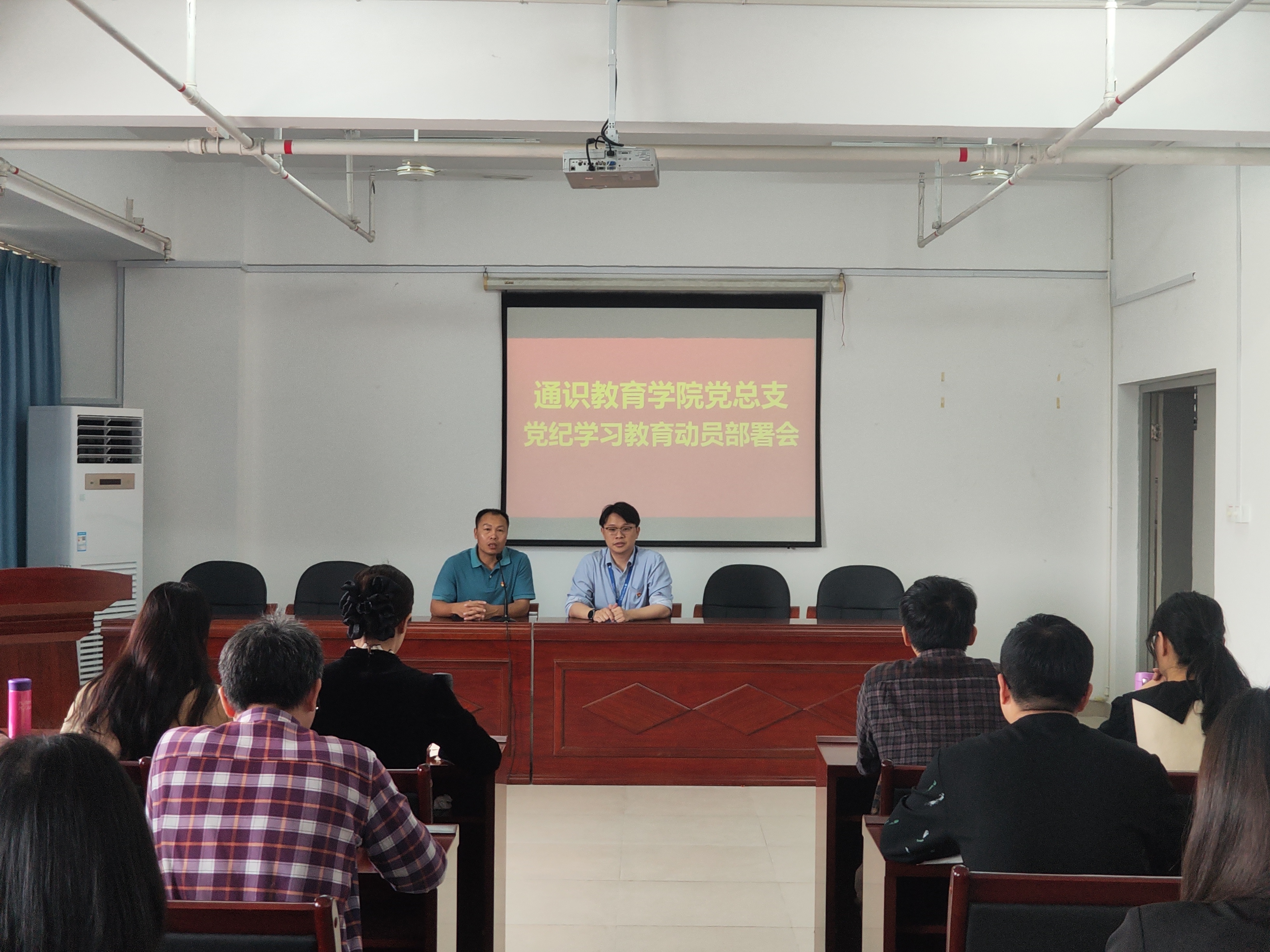 4月18日,通識教育學(xué)院黨總支召開黨紀(jì)學(xué)習(xí)教育動員部署會,全體黨員參加會議,黨總支副書記金晶晶主持會議。