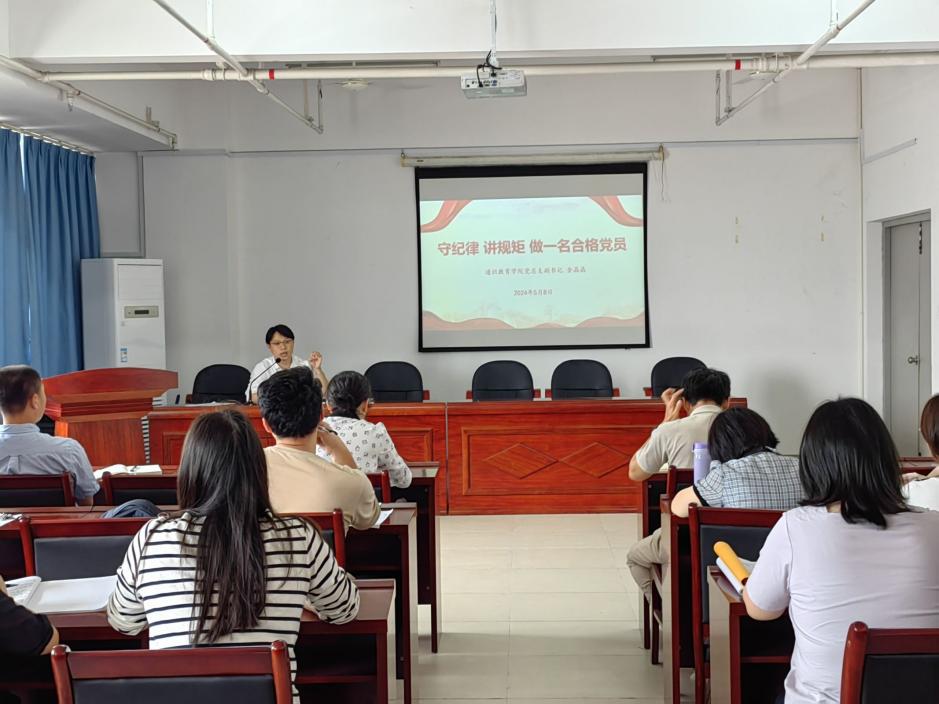5月8日,通識教育學院黨總支副書記金晶晶以《守紀律 講規(guī)矩 做一名合格黨員》為題,對總支全體黨員、入黨積極分子上黨課。