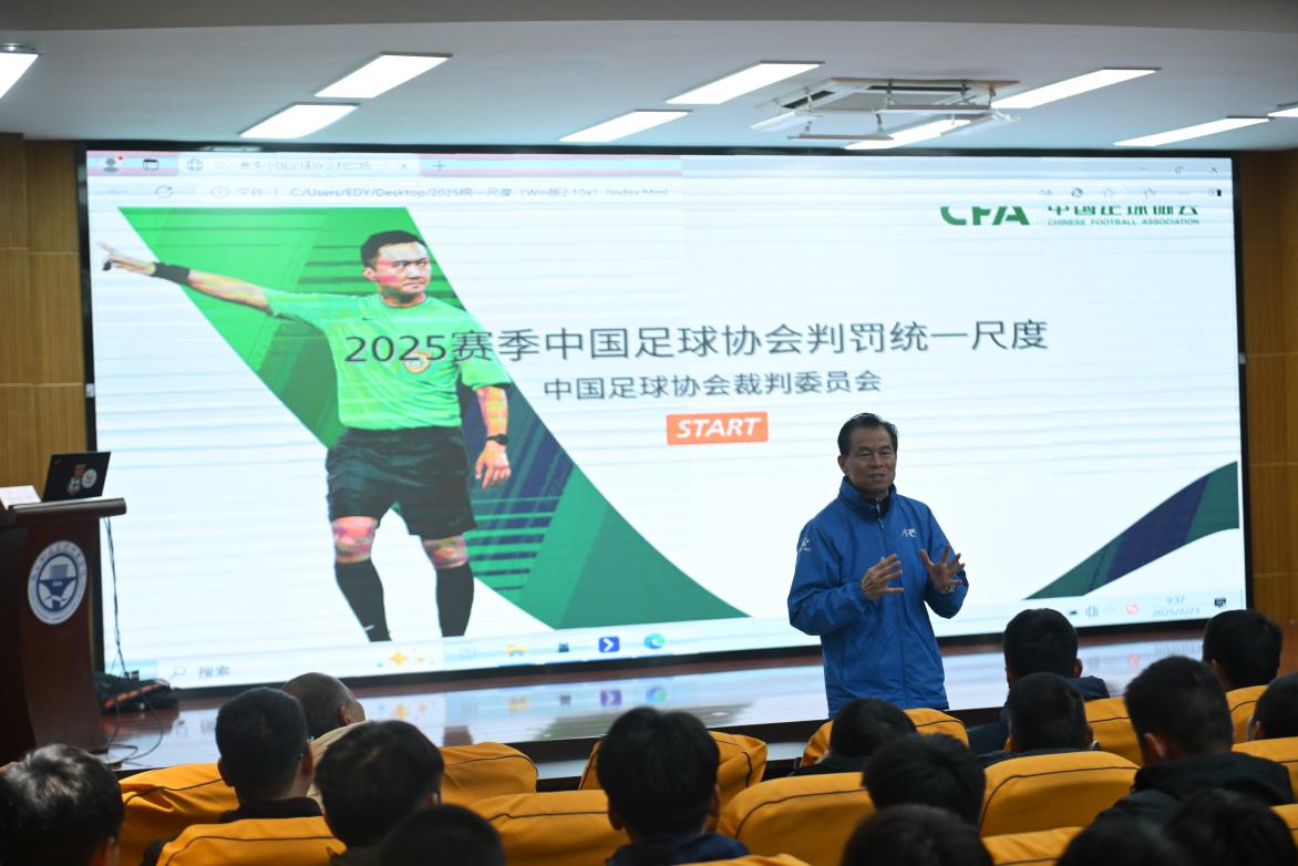 開(kāi)幕式后國(guó)際足聯(lián)、亞足聯(lián)、中國(guó)足協(xié)講師,前亞洲金旗劉鐵軍老師為全體學(xué)員講解2025中國(guó)足協(xié)各級(jí)比賽統(tǒng)一尺度,劉鐵軍老師理論與視頻相結(jié)合,為學(xué)員們解疑答惑。下午全體裁判員在實(shí)踐課講師王長(zhǎng)其、王發(fā)振、溫從明、程偉的帶領(lǐng)下,進(jìn)行了裁判員跑位和助理裁判員旗示練習(xí)。