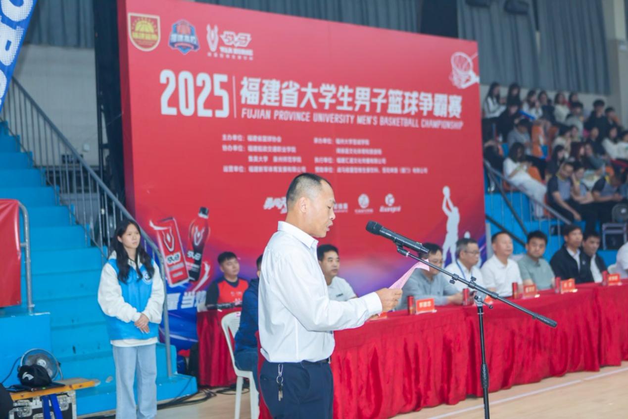 2025年福建省大學(xué)生男子籃球爭霸賽在4月24日晚在我校舉行開幕式。福建省籃球協(xié)會副秘書長何瑋翔、福建省公安體育協(xié)會秘書長朱凱、福建船政交通職業(yè)學(xué)院副院長陳常暉、福建理工大學(xué)體育部主任林長地、福州大學(xué)至誠學(xué)院黨委副書記林文麟、福建師范大學(xué)公共體育部副主任鐘曉波、福建警察學(xué)院戰(zhàn)術(shù)系主任林陽東、福建船政交通職業(yè)學(xué)院通識教育學(xué)院院長郭建忠、閩侯縣文化體育和旅游局局長張其標(biāo)、福建師范大學(xué)體育科學(xué)院籃球教研室主任、本次比賽裁判長張水順等領(lǐng)導(dǎo)和嘉賓出席了開幕式。