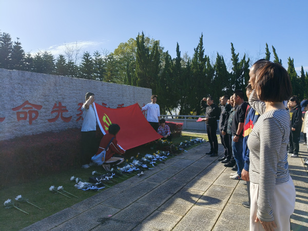 活動現場莊嚴肅穆。全體人員整齊列隊,面向革命烈士紀念碑肅立默哀,深切緬懷為民族解放、國家富強英勇獻身的革命先烈,寄托無限哀思。默哀畢,黨員代表和運動員代表緩步上前,向烈士紀念碑敬獻鮮花,全體人員行三鞠躬禮,表達對革命先烈的崇高敬意。在重溫入黨誓詞環(huán)節(jié),錚錚誓言鏗鏘有力,進一步堅定了全體黨員的理想信念與責任擔當。