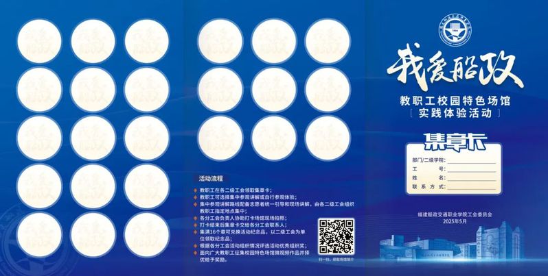 活動(dòng)以“創(chuàng)新船政、質(zhì)量船政、文化船政、開放船政”理念為牽總,學(xué)院校史館、三全育人館、嚴(yán)復(fù)史績(jī)館、黨建思政船政文化研學(xué)中心“三館一中心”為組團(tuán),青年服務(wù)中心、“一站式”學(xué)生服務(wù)中心、職工之家“兩區(qū)三陣地”為輻射,航海技術(shù)、安全技術(shù)與管理兩大“雙高”專業(yè)群為龍頭,交通土建、汽車運(yùn)用、通用航空、軌道交通、交通運(yùn)輸服務(wù)、機(jī)械與智能制造、信息技術(shù)與智慧交通為支撐的9大現(xiàn)代綜合立體交通專業(yè)集群16個(gè)特色實(shí)驗(yàn)實(shí)訓(xùn)基地為延伸,采用集章打卡互動(dòng)形式,通過(guò)沉浸式、體驗(yàn)式參觀方式,教學(xué)相長(zhǎng)、組團(tuán)互學(xué)研學(xué)實(shí)踐,充分活化學(xué)院“愛國(guó)強(qiáng)技、產(chǎn)學(xué)一體、精益求精、趨變求新”職教資源和辦學(xué)特色,充分激發(fā)學(xué)院教職工的自豪感、幸福感和獲得感,團(tuán)結(jié)引領(lǐng)廣大教職員工與學(xué)院發(fā)展同頻共振,與偉大時(shí)代進(jìn)步同向同行。