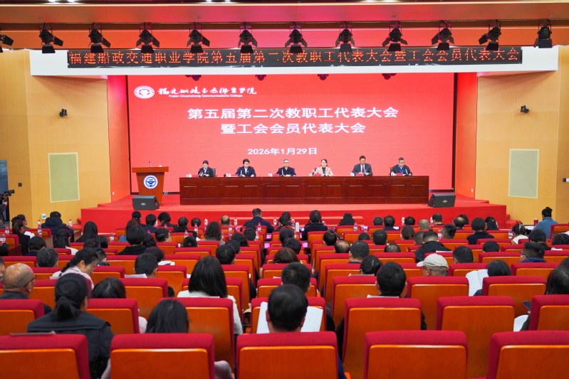 1月29日上午,福建船政交通職業(yè)學(xué)院第五屆第二次教職工代表大會(huì)暨工會(huì)會(huì)員代表大會(huì)在藝新樓331報(bào)告廳召開。本次會(huì)議是在學(xué)院深入學(xué)習(xí)貫徹黨的二十大和二十屆歷次全會(huì)精神,全院上下認(rèn)真貫徹落實(shí)學(xué)院第二次黨代會(huì)精神,奮力推進(jìn)“十五五”規(guī)劃開局和新一輪“雙高”建設(shè)的關(guān)鍵節(jié)點(diǎn)召開的一次重要會(huì)議。學(xué)院全體領(lǐng)導(dǎo)、正式代表、列席代表出席會(huì)議。會(huì)議由學(xué)院黨委副書記、工會(huì)主席張輝主持。