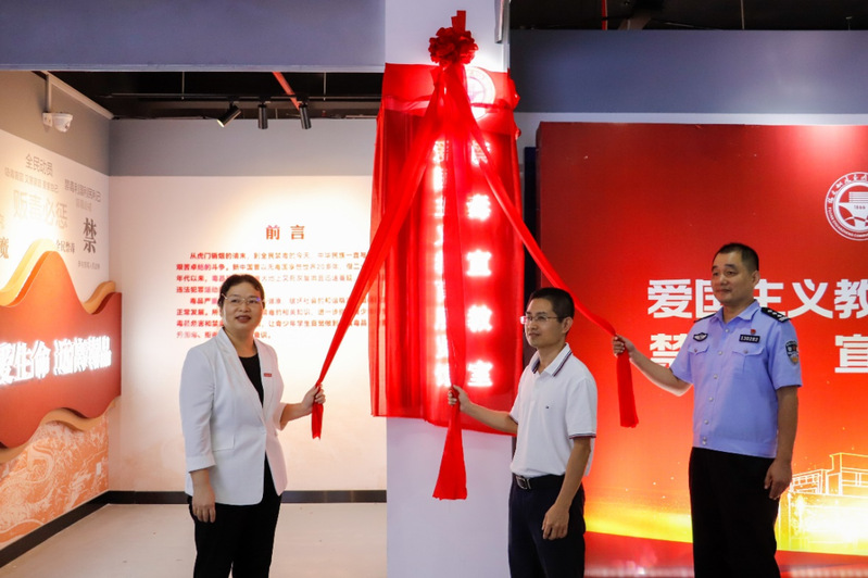 揭牌儀式上,張輝書記代表學院致辭,她向師大附小、對湖派出所長期以來對學院的關心和支持表示感謝。現(xiàn)場,與會領導共同為禁毒宣教室揭牌。