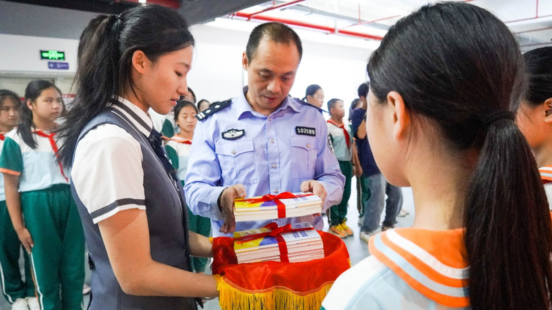 揭牌儀式后,大家在禁毒宣誓墻前莊嚴宣誓,并向師大附小及我院學生代表捐贈禁毒書籍。