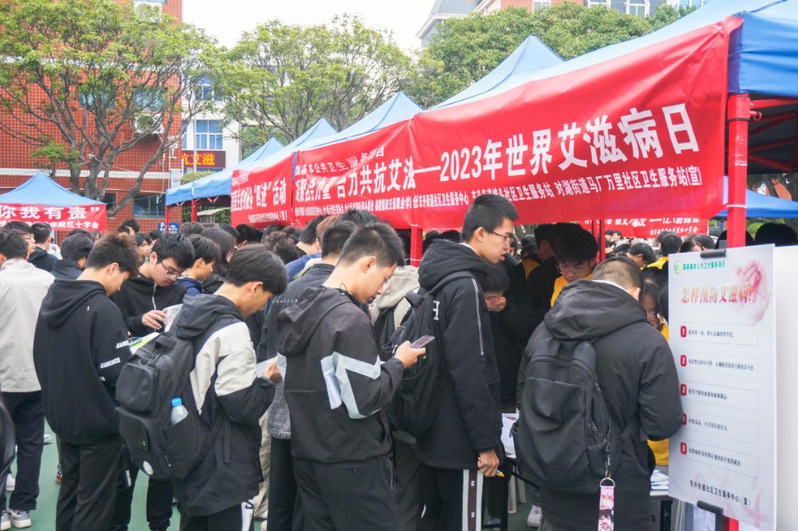 校院兩級紅會組織開展防艾簽名墻、紅絲帶DIY、祈愿手繪等創(chuàng)意游園會,以生動趣味的方式科普、宣傳防艾知識。東升街道衛(wèi)生院現(xiàn)場設(shè)置義診咨詢區(qū),家庭醫(yī)生簽約等宣傳展位,為同學們提供便民服務。