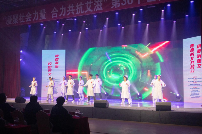活動現(xiàn)場,防艾藝術(shù)展演在學院主會場隆重舉行,文藝展演內(nèi)容豐富、生動有趣,獲得現(xiàn)場師生們陣陣歡呼和掌聲。防艾藝術(shù)展演展示了近年改編的具有深刻教育意義的系列防艾節(jié)目,我院學生社團、校藝術(shù)團等帶來精彩節(jié)目。