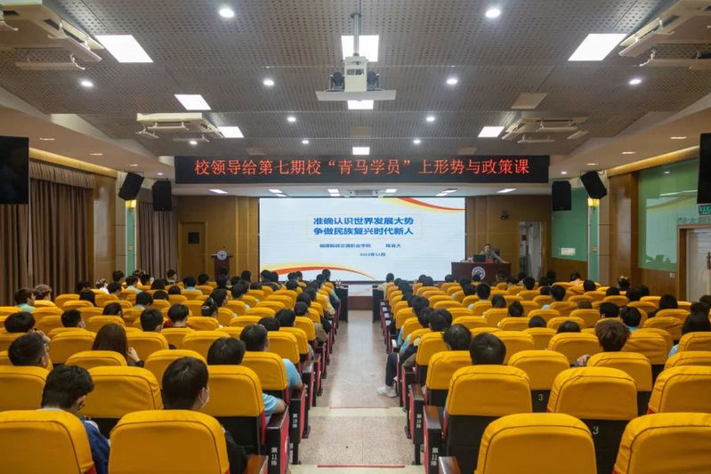 12月14日晚,我院黨委書記陳宜大在福道園行政樓學(xué)術(shù)報(bào)告廳為我院第七期“青馬學(xué)員”講授《準(zhǔn)確認(rèn)識(shí)世界發(fā)展大勢(shì),爭(zhēng)做民族復(fù)興時(shí)代新人》的專題形勢(shì)與政策課。組織部、宣傳統(tǒng)戰(zhàn)部、學(xué)生工作部、團(tuán)委、馬克思主義學(xué)院等我院團(tuán)員和青年主題教育副組長(zhǎng)單位負(fù)責(zé)人、各二級(jí)學(xué)院分團(tuán)委負(fù)責(zé)人、馬克思主義學(xué)院教師、青馬班學(xué)員參加講座。講座由院團(tuán)委書記陳慧主持。