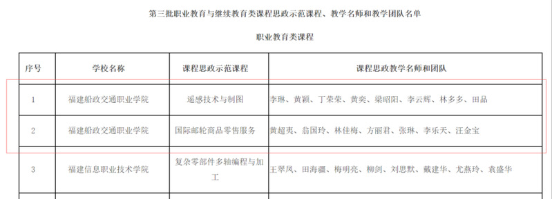 近日,福建省教育廳公布第三批課程思政示范項目(職業(yè)教育與繼續(xù)教育類)名單,我院《遙感技術(shù)與制圖》《國際游輪商品零售服務(wù)》2門課程獲批省級課程思政示范課程。