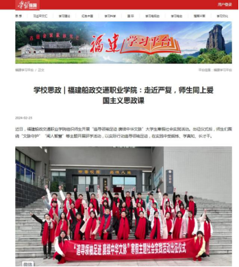 學(xué)院認(rèn)真落實福建省委教育工委要求,統(tǒng)籌部署、協(xié)同開展“追尋領(lǐng)袖足跡 賡續(xù)中華文脈”大學(xué)生寒假社會實踐,成立社會實踐隊,走進(jìn)嚴(yán)復(fù)故居、嚴(yán)復(fù)博物館等場所,開展“文脈守護(hù)”“閩人智慧”等主題開展研學(xué)活動,把“小我”融入到“大我”,在社會實踐中堅定前行方向、找準(zhǔn)人生坐標(biāo)、扛起責(zé)任擔(dān)當(dāng)。本次主題社會實踐活動得到學(xué)習(xí)強(qiáng)國福建學(xué)習(xí)平臺、福建高校思政網(wǎng)、新福建等多家媒體報道,取得了良好的育人成效和社會認(rèn)可。
