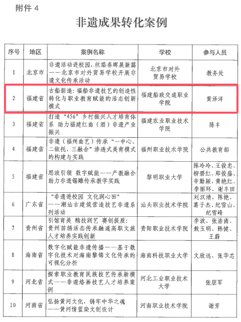 近日,中國職業(yè)技術(shù)教育學(xué)會發(fā)布《關(guān)于公布職業(yè)教育“立德樹人”、解決產(chǎn)業(yè)發(fā)展問題、“職教出海”、非遺成果轉(zhuǎn)化案例名單的通知》,我院報(bào)送的《燈塔型航海人才“技能+素養(yǎng)”雙適任育訓(xùn)范式創(chuàng)新實(shí)踐》《古船新造:福船非遺技藝的創(chuàng)造性轉(zhuǎn)化與職業(yè)教育賦能的活態(tài)創(chuàng)新模式》分別入選“立德樹人”和“非遺成果轉(zhuǎn)化”典型案例。